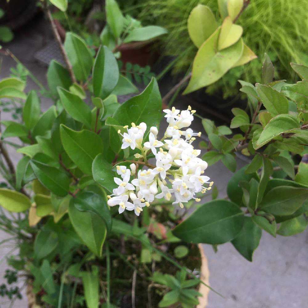 生垣のネズミモチかしら。小さいととても可憐です。黒い種ができます。見た目まずそうだけどトリさん🐦は食べるんですね