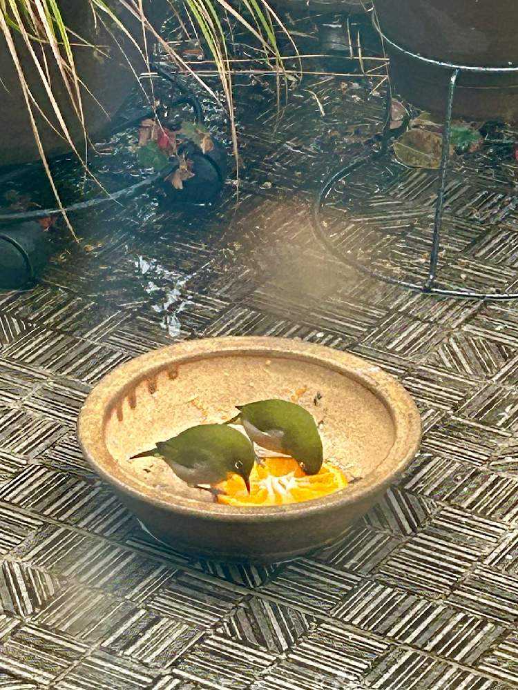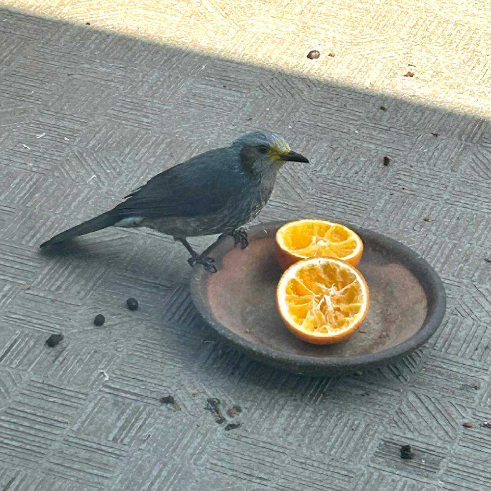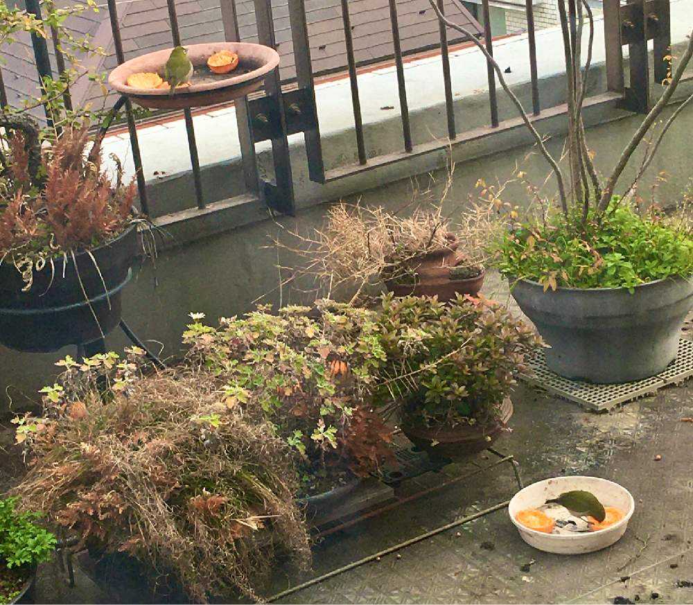 10月から4月までは、ベランダに🍊を置いて鳥寄せしています。
