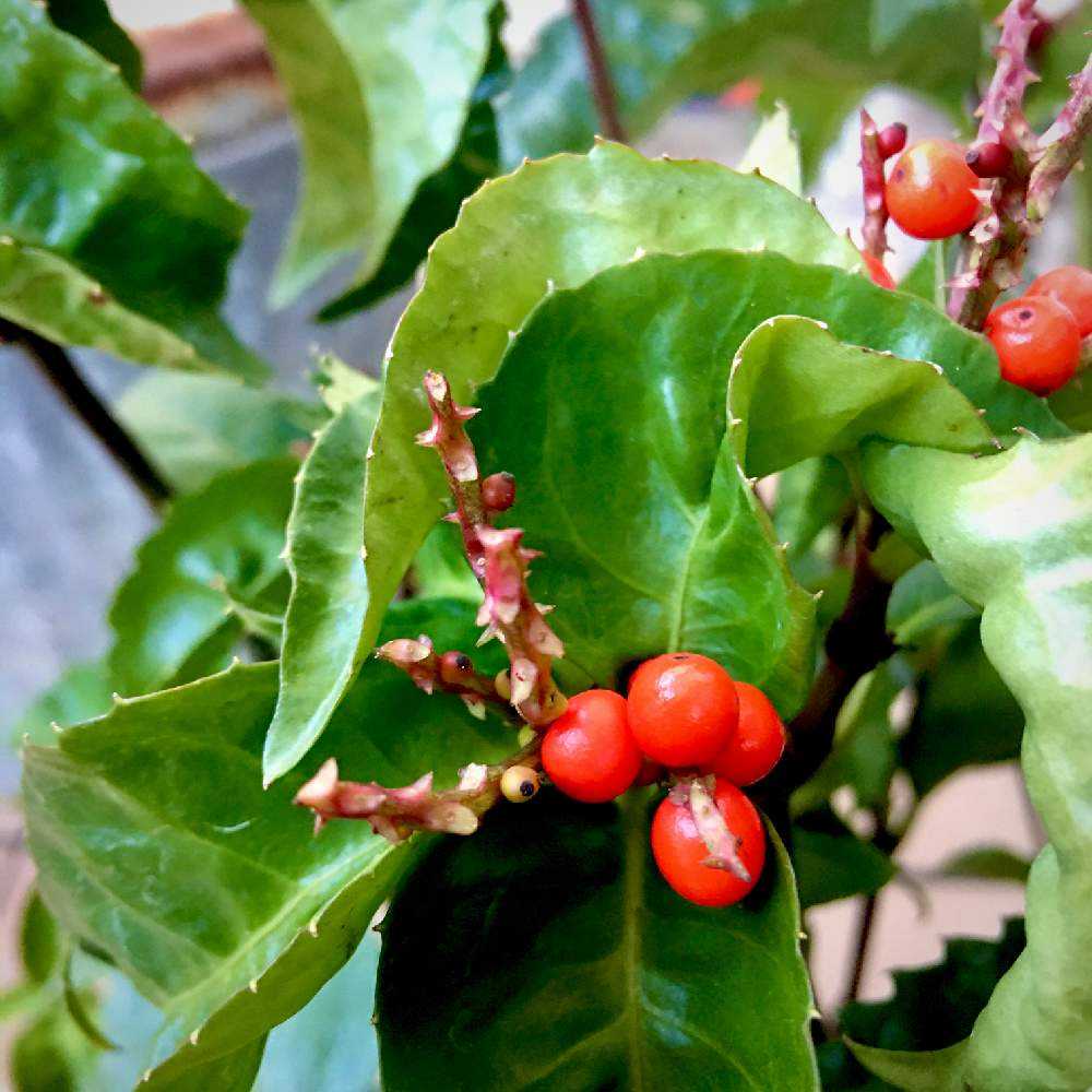 ベランダの隅っこに隠しておいた千両を見つけ出して食べたようです。お正月はすぎたから許します😘
