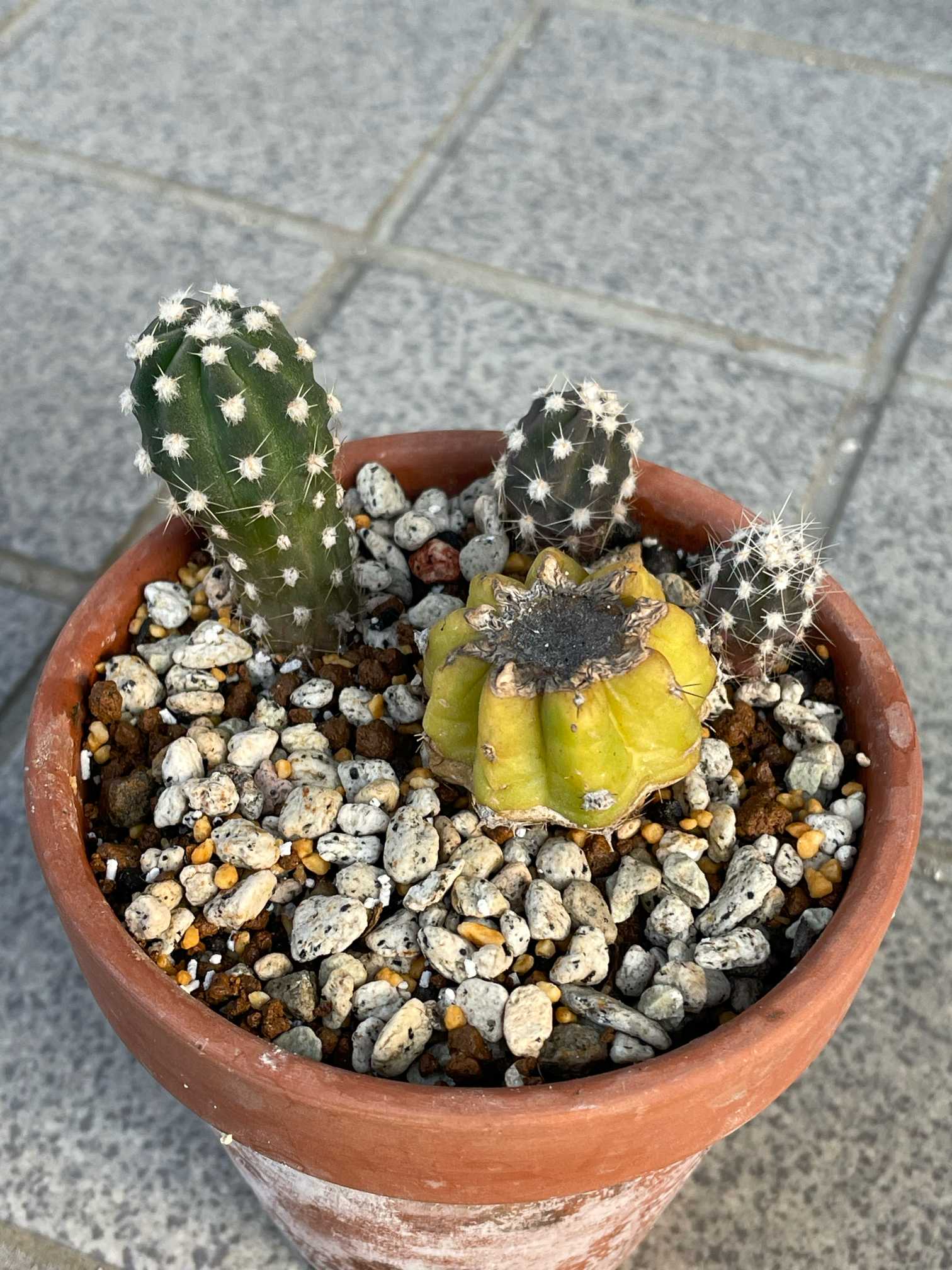 上の部分が小さすぎて少し角を落とすぐらいしからできず💦 刺座(刺のつけ根の白い綿毛の座布団みたいなところ)も減ってしまい😰