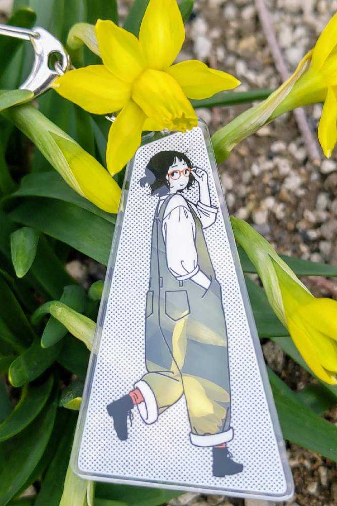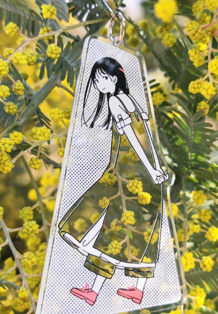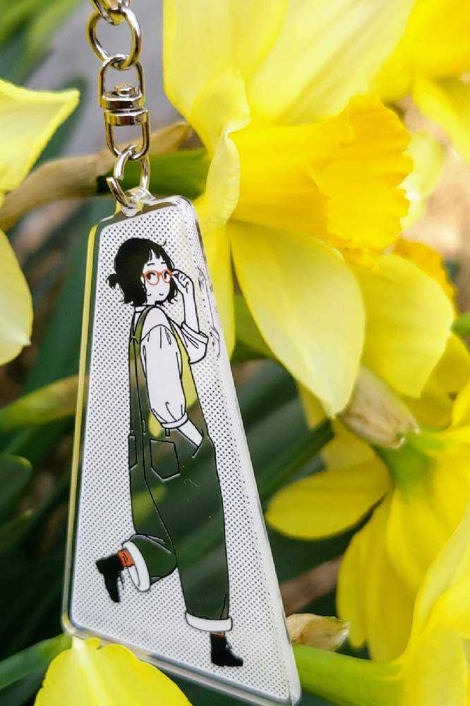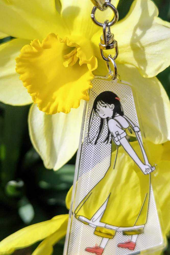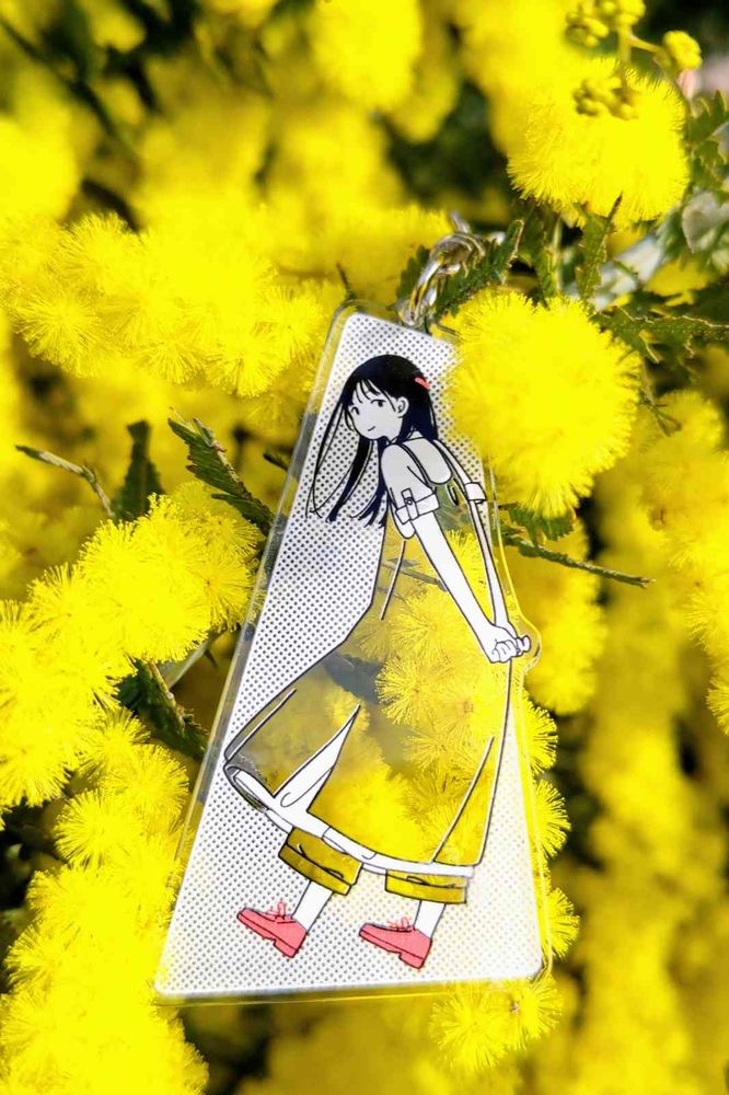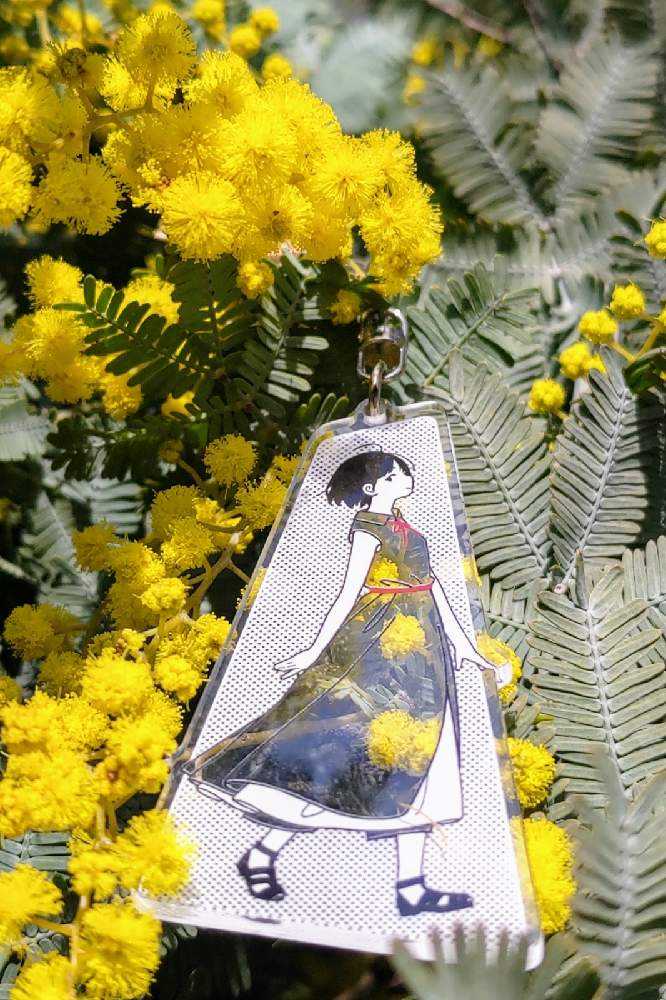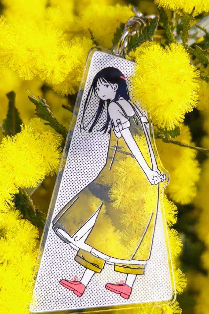“お散歩は季節をまとって”冬野カモメさん作出アクリルキーホルダーで、ファッションショーをたのしんでます。着せ替えは無限大です。春を運ぶ黄色い花をまとわせた。幸せの黄色いリボン🎀。