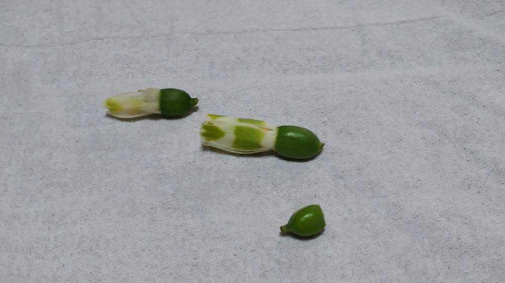 花がら摘みでついてきた、青いスノードロップの種を割ってみた