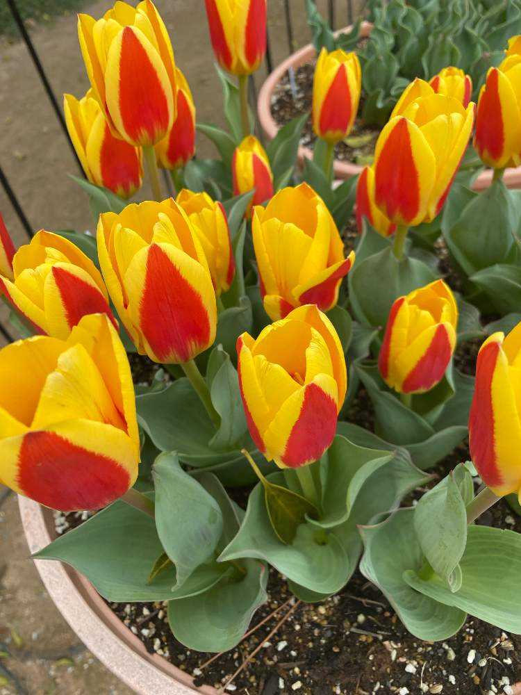 数あるチューリップの中に1つだけ咲いているプランターが❣️🥰