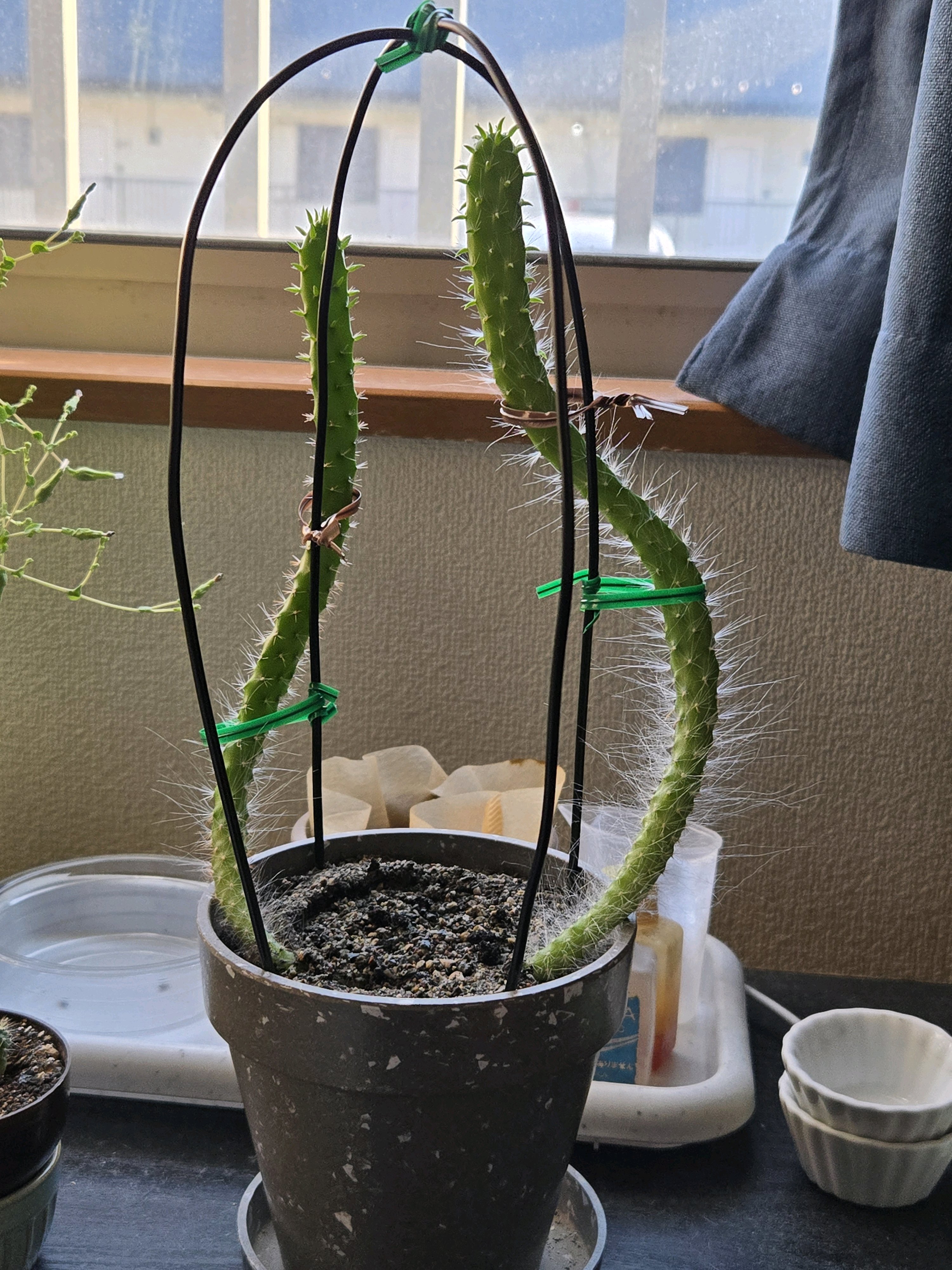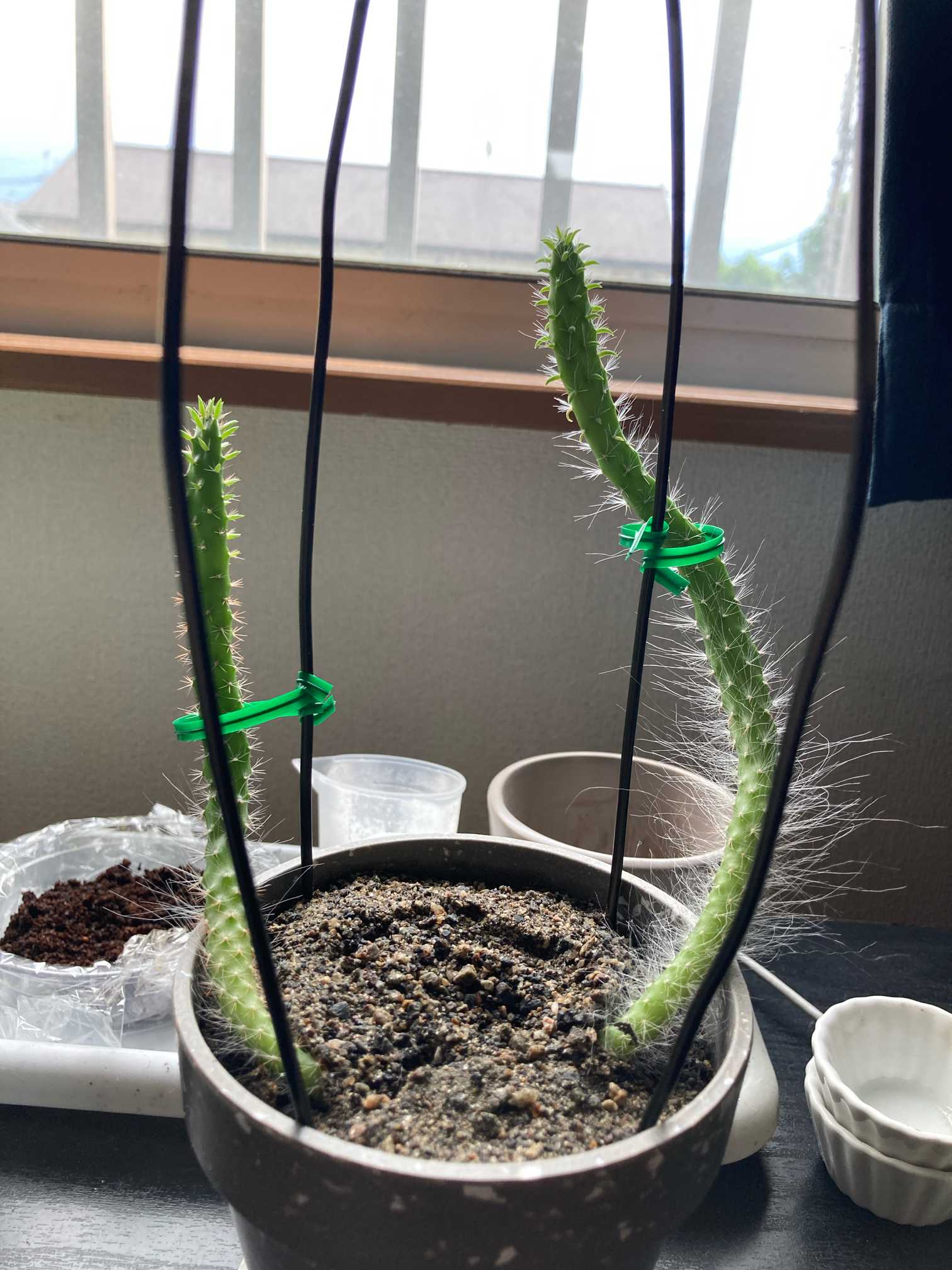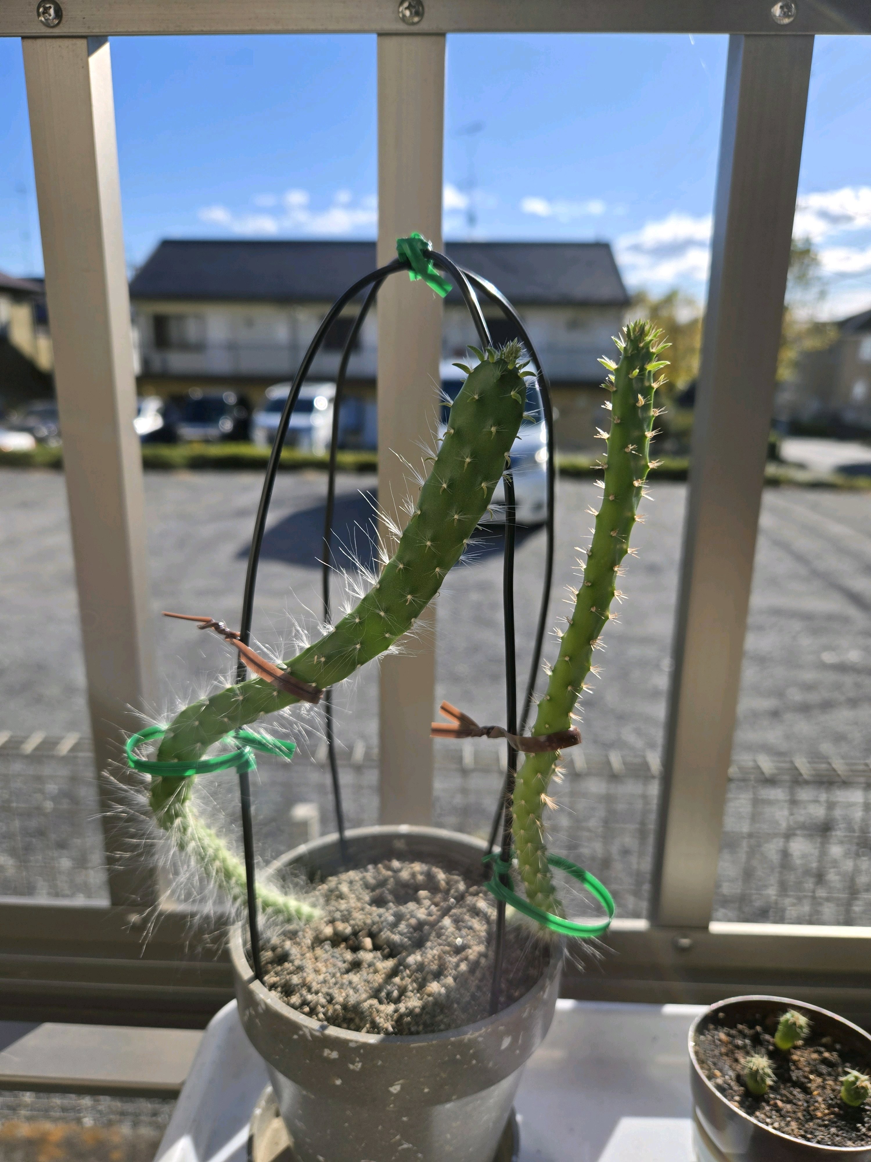 4/28 左は鉢に寄りかからなくなった。自力で立てるようになった。