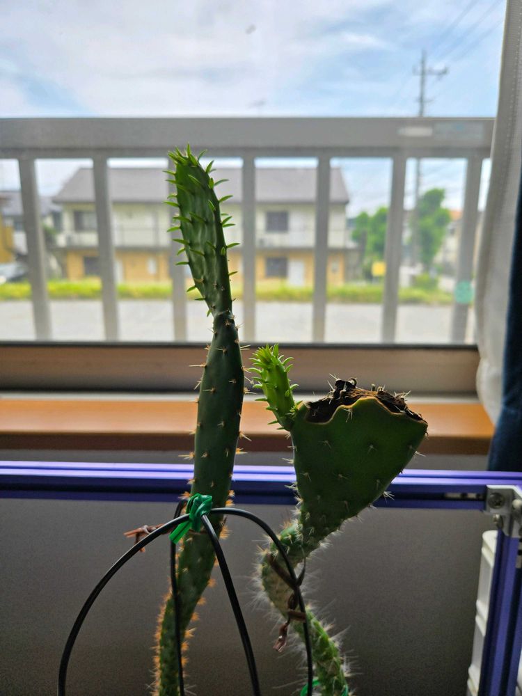 7/31 双葉の間からサボテンの本体らしき物が出てきた。