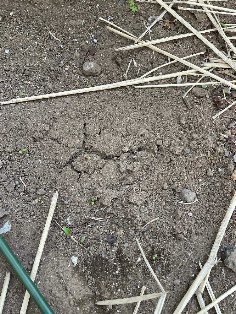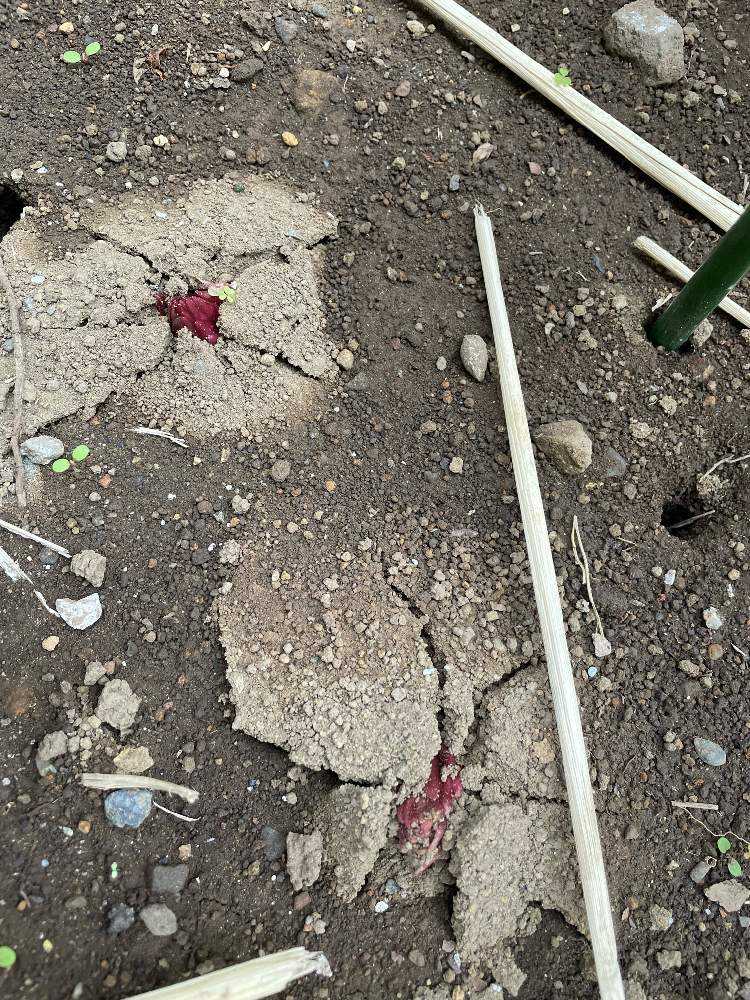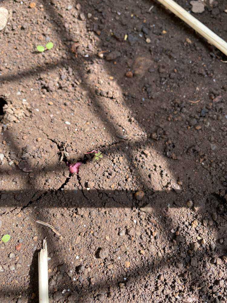 なかなか目が出ないなぁ。ダメかなと思っていたら地面が割れているのに気がついた