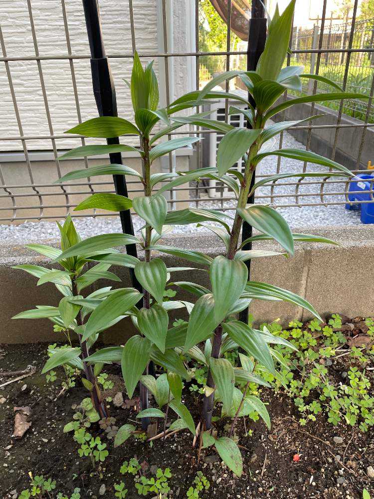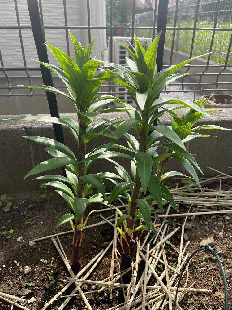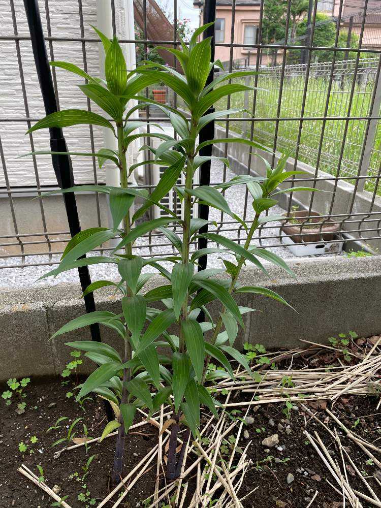ユリって芽を出してからの爆伸びがほんと毎年芽を見張る。今年は幾つ花が見られるかな?かなり太めの芽が出てるけど