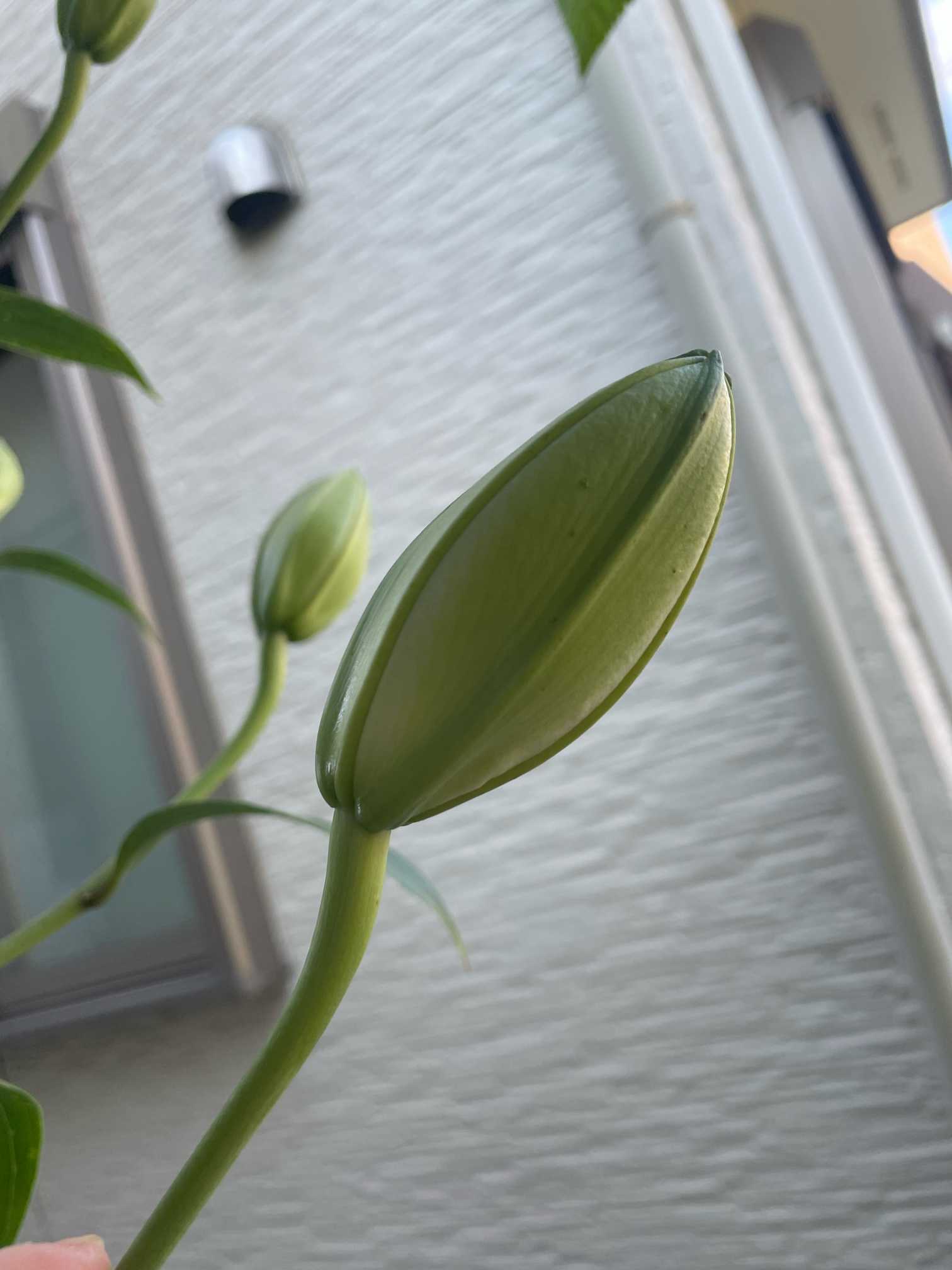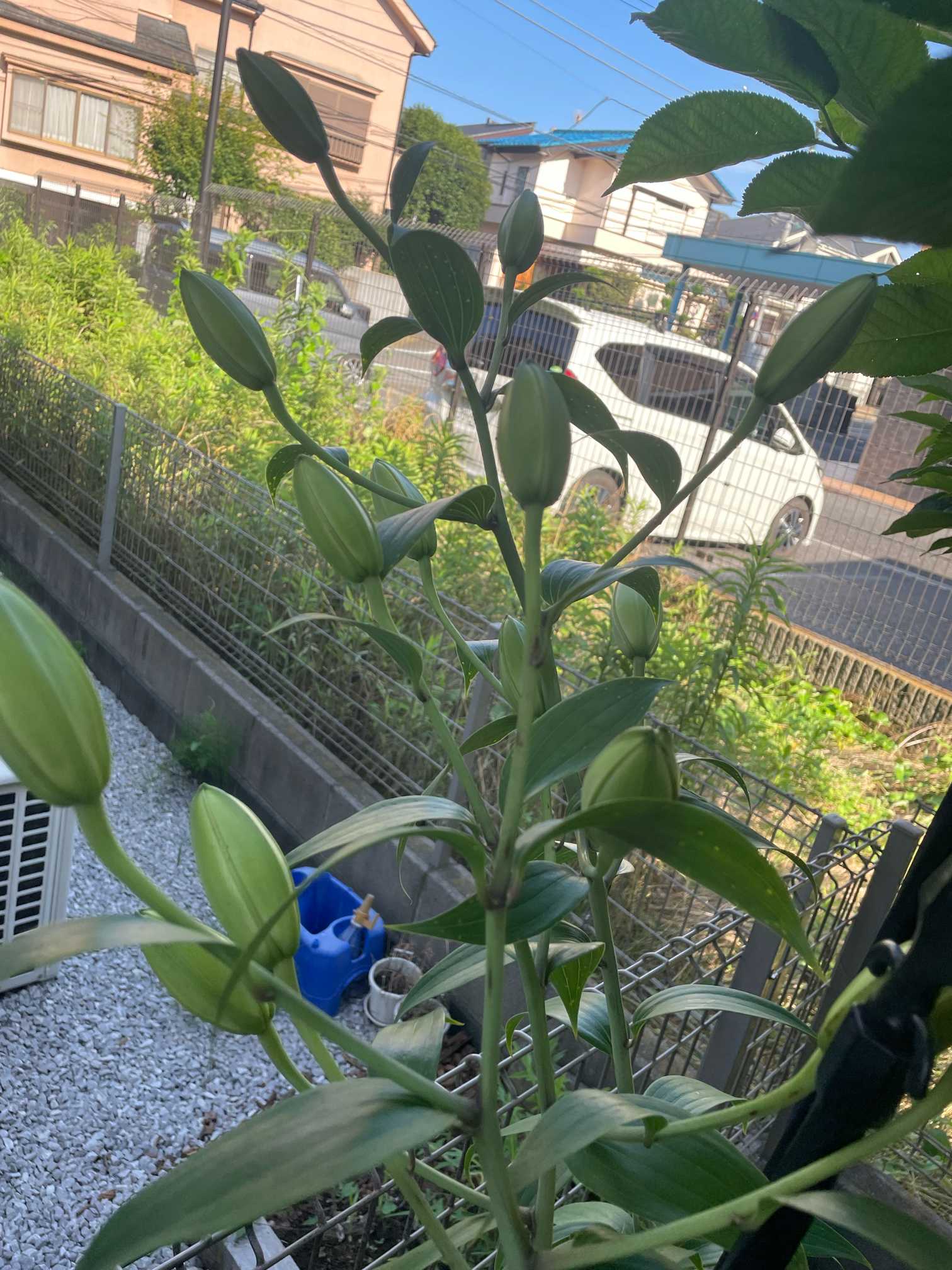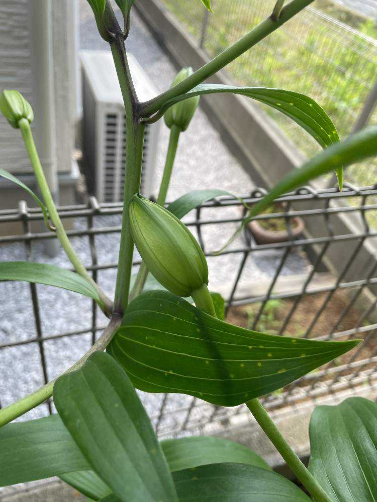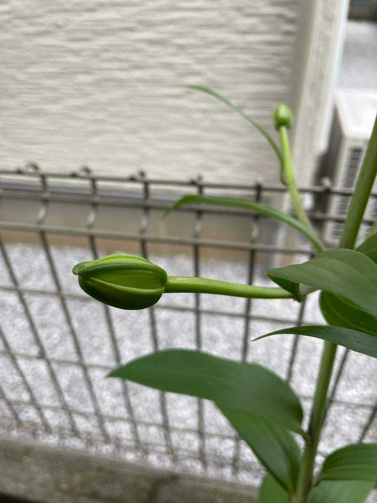 外を歩いていると百合がたくさん咲いているのを見るようになったけど、うちの百合はまだまだ蕾だなぁ。遅咲きなんだろうか?蕾は大きくなってきてるんだけどなぁ