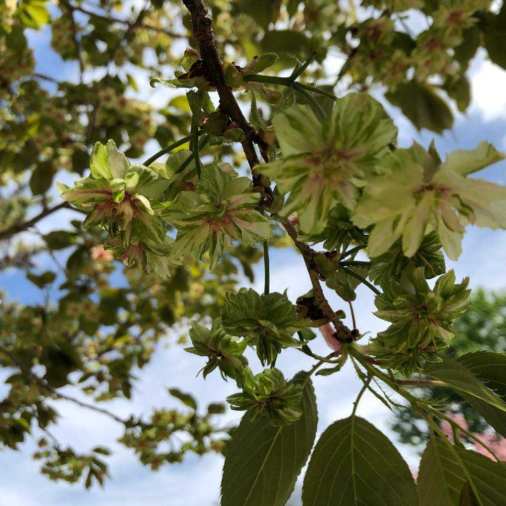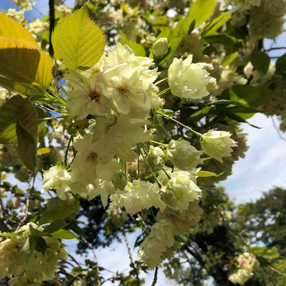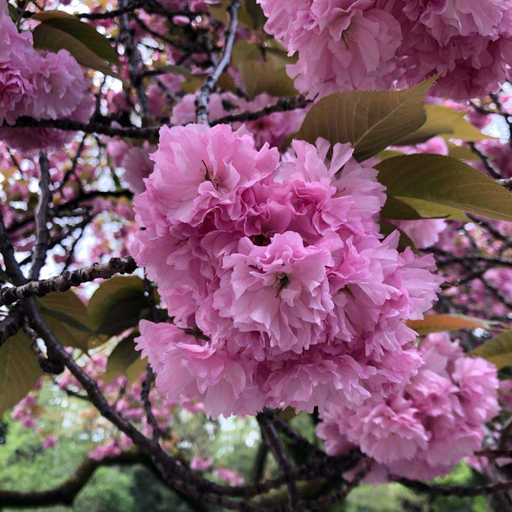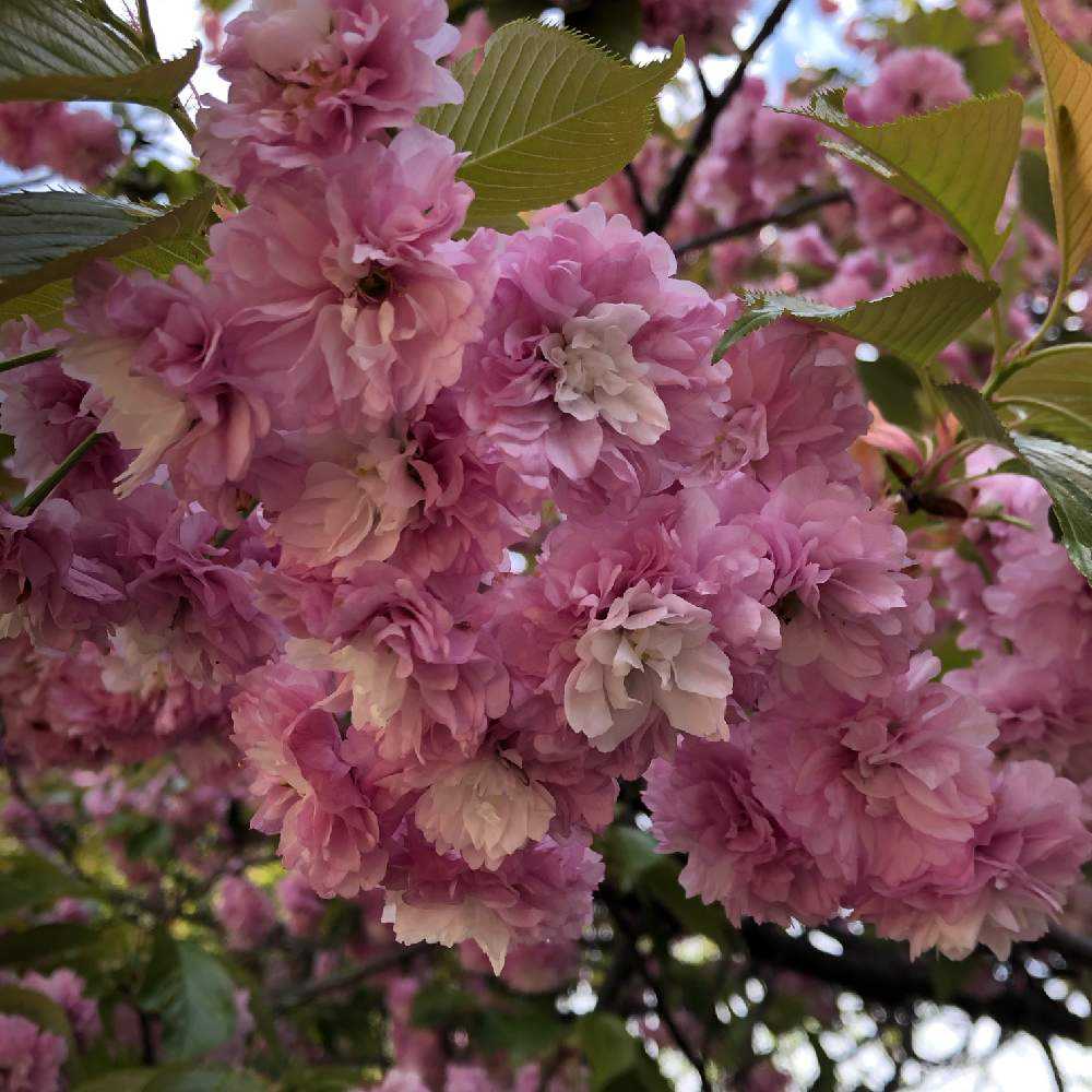 八重桜って花が重くて下向きに咲くのが多いからどうしても逆光になるのよね…