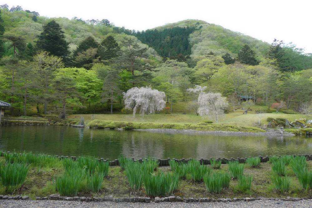 庭園は、周囲の山を庭の景色に取り入れる"借景"の技法が使われていて、雄大な眺め。