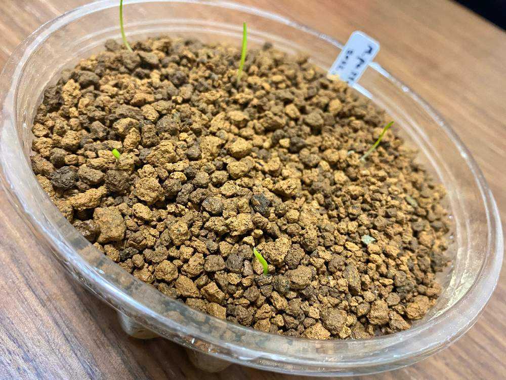 気がついたら室内管理の方は、ひょろっとした芽が出ていました。単子葉類でした。