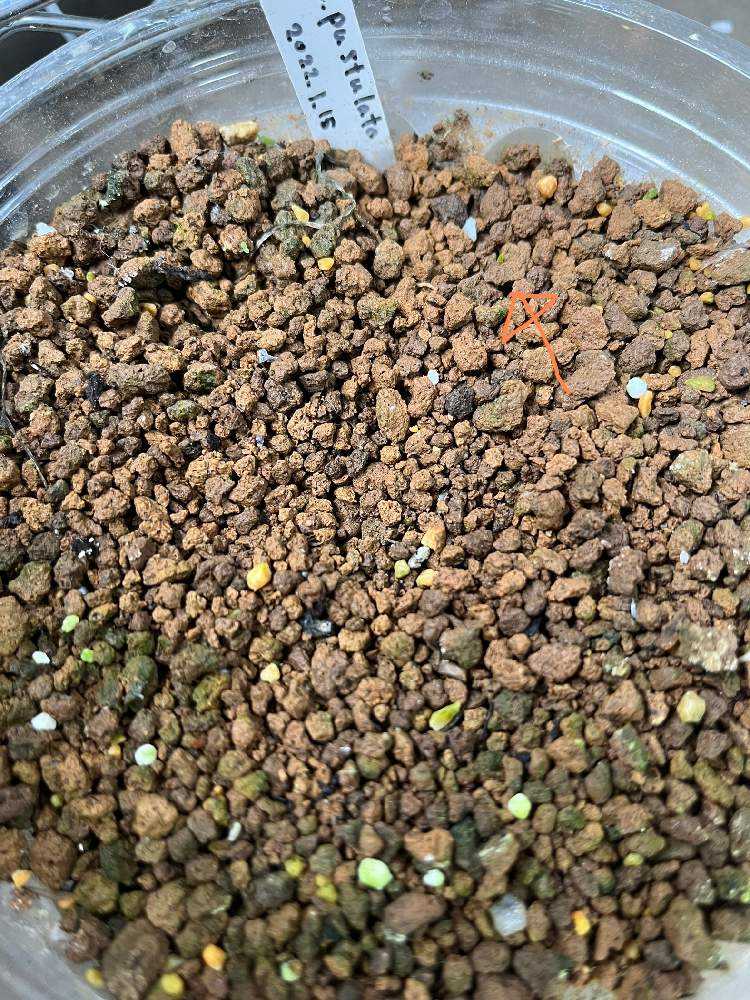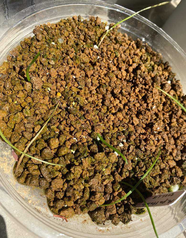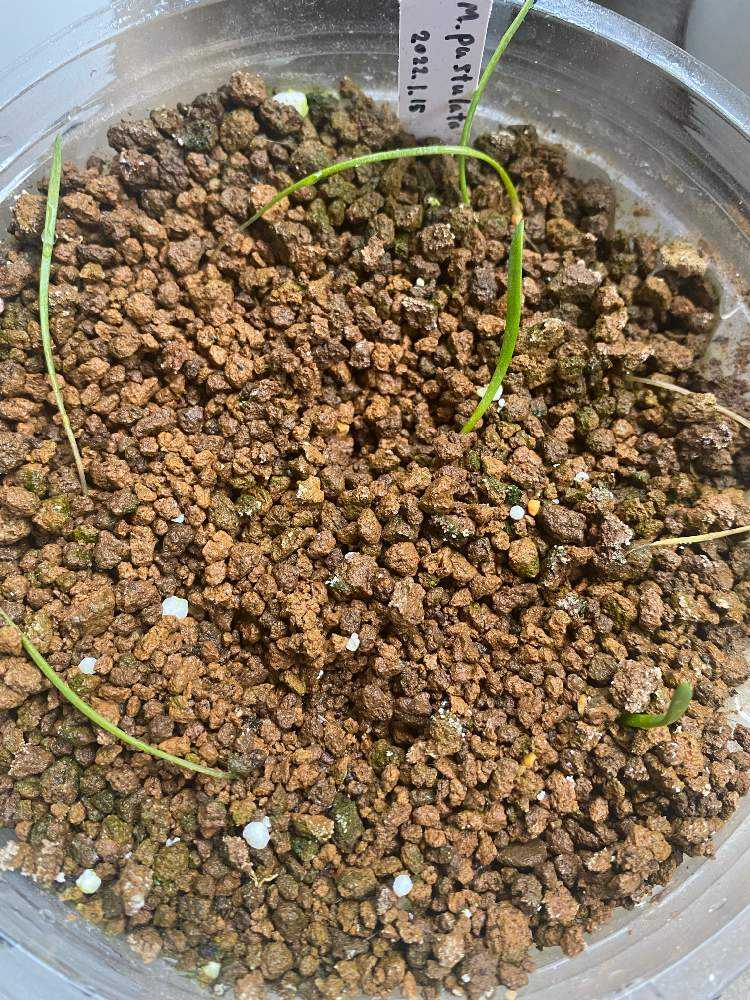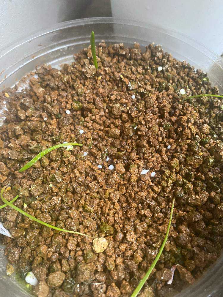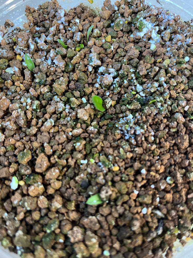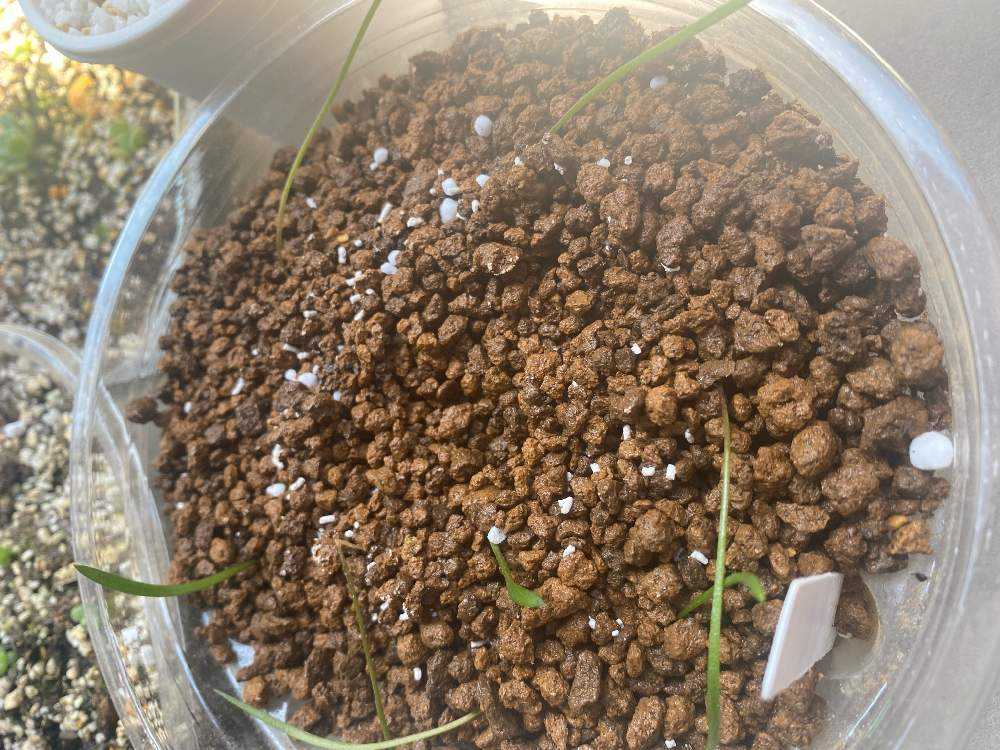 ちなみに今まで動きのなかった外管理の種も最近ようやく芽が出ました。初期のひょろ長い葉です。