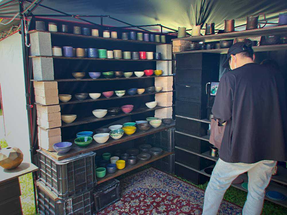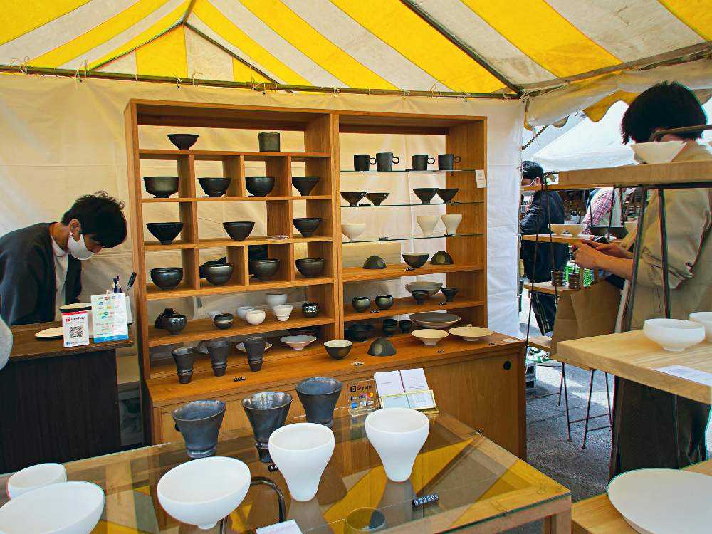 販売店約50店舗の他約600のテントが立ち並び、伝統的な益子焼から、カップや皿などの日用品、 美術品まで販売されます。