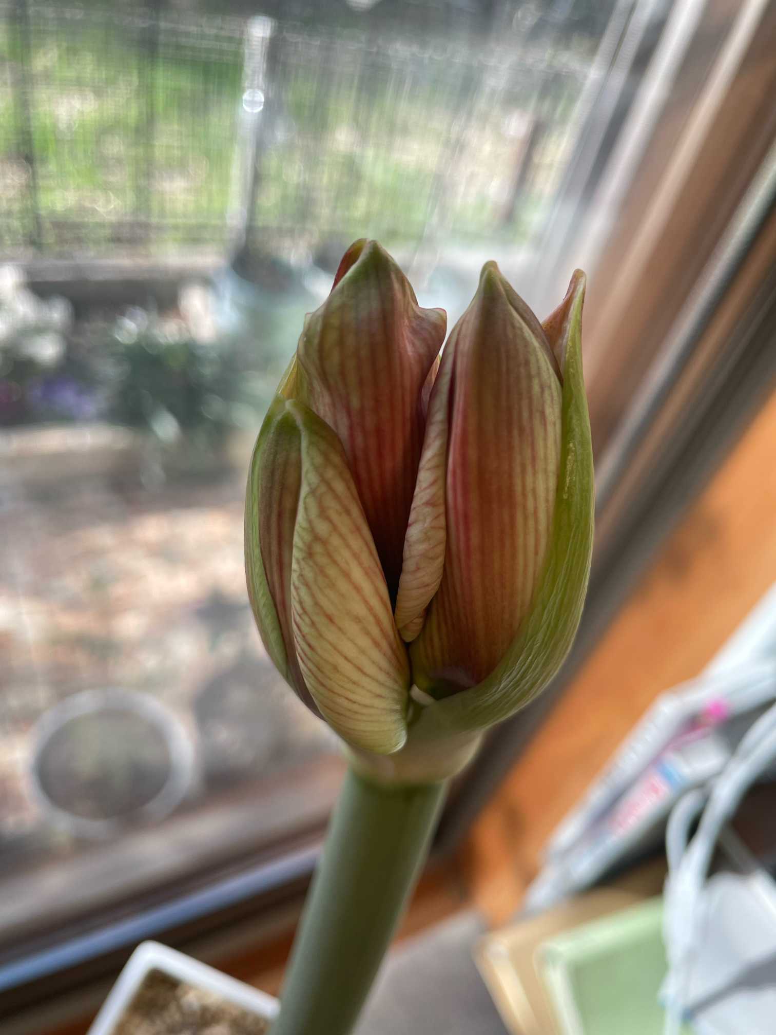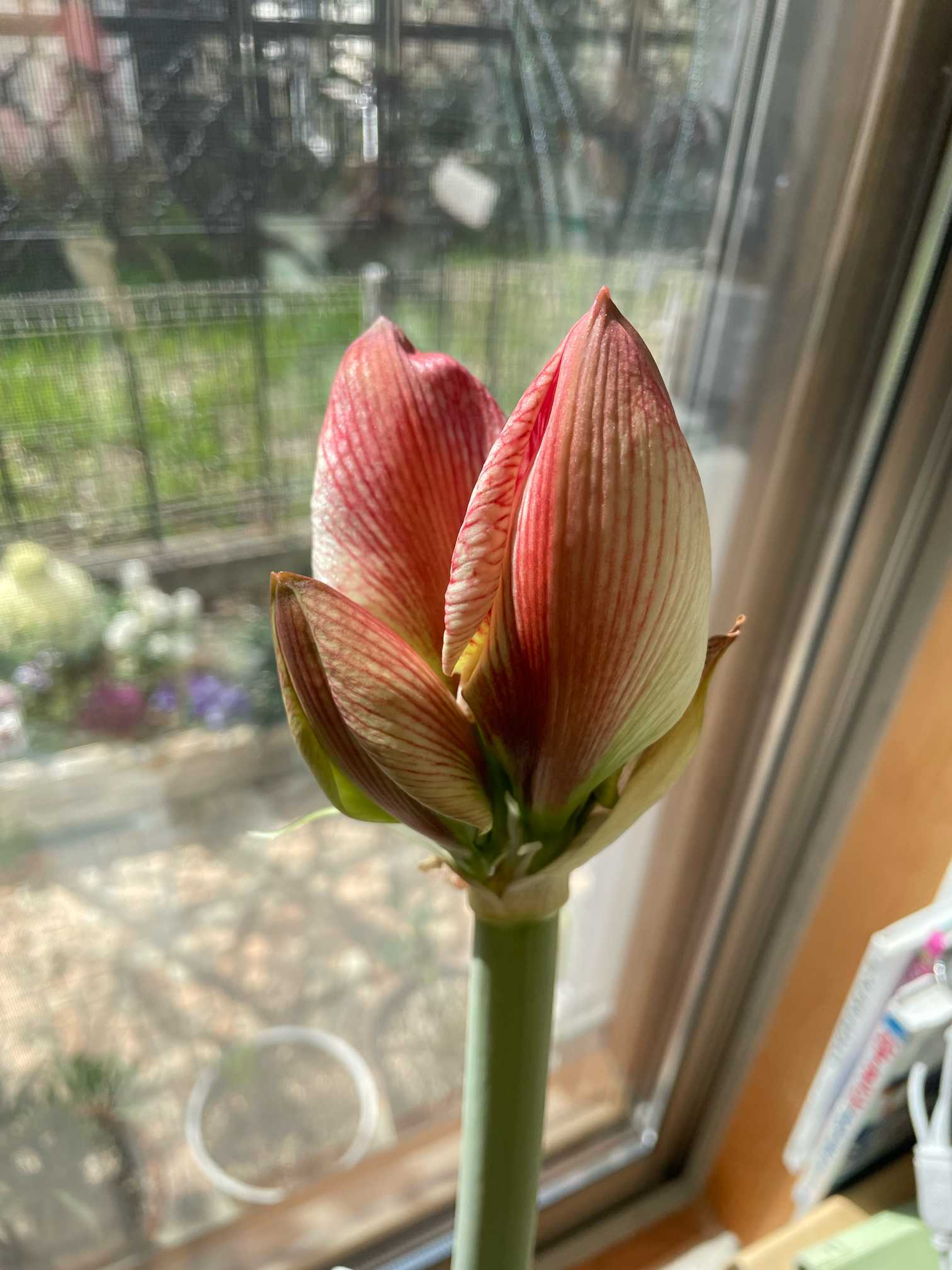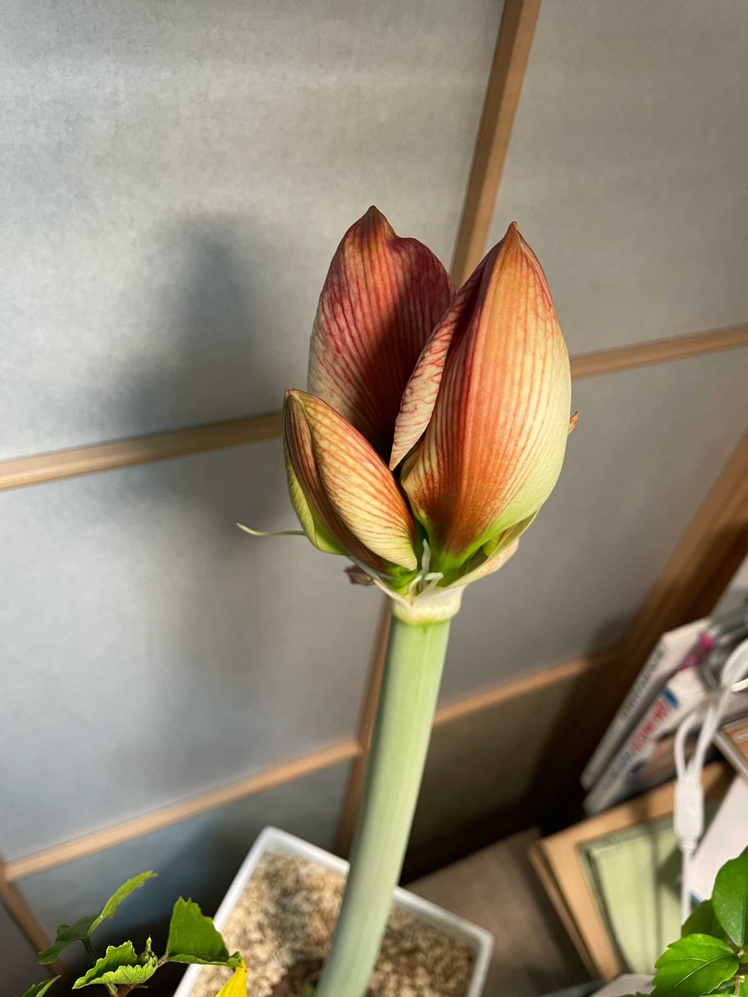 てへぺろだったアマリリスをもう少し日当たりのいいところに移動させてあげたところ、一週間でだいぶ大きくなりました。