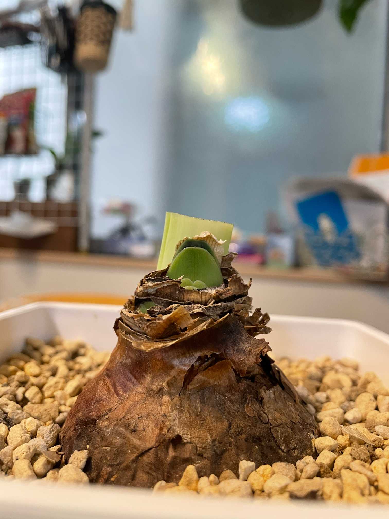 ついにアマリリスちゃん葉っぱを出し始めました。てへぺろ状態。