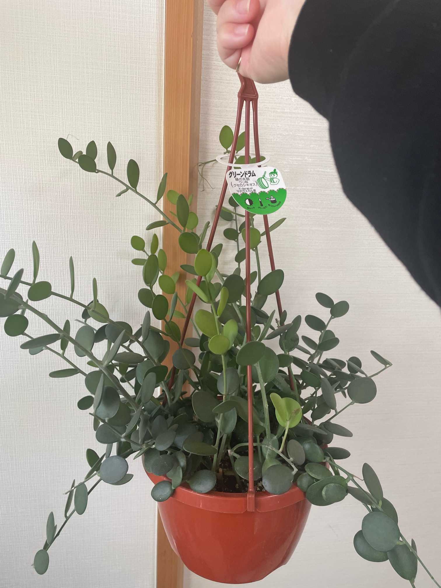 翌日気温が下がる予報。いつも買い物に行く店の園芸で屋外に出された結構立派なグリーンドラム。値段も安いし元気。このまま明日になったら寒いし痛むだろうなぁ。今元気なのに可哀想だなぁ・・・。買い物してから考えよう・・・。買い物終了後、やっぱりそこにいたら枯れてしまうからおうちにおいでと連れて帰ってしまったちょうど育てているグリーンドラムがヒョロヒョロになってしまったので追加。
