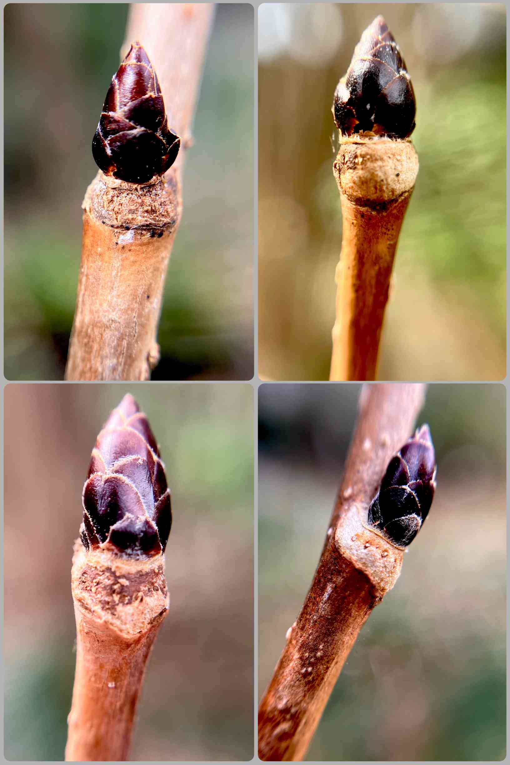 冬芽は黒っぽくツヤがあり、芽鱗は7〜9枚!