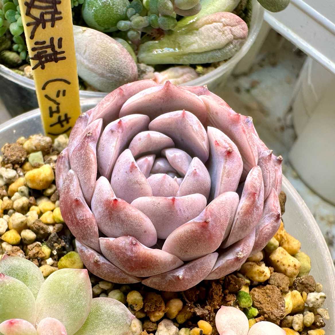 【エケベリア組 ㊗️新入生】 ● 姝祺(シュキ) 6cm鉢 『オマケで頂いたが詳細不明。 姝祺(シュキ)だと思われるが…真相はいかに。』