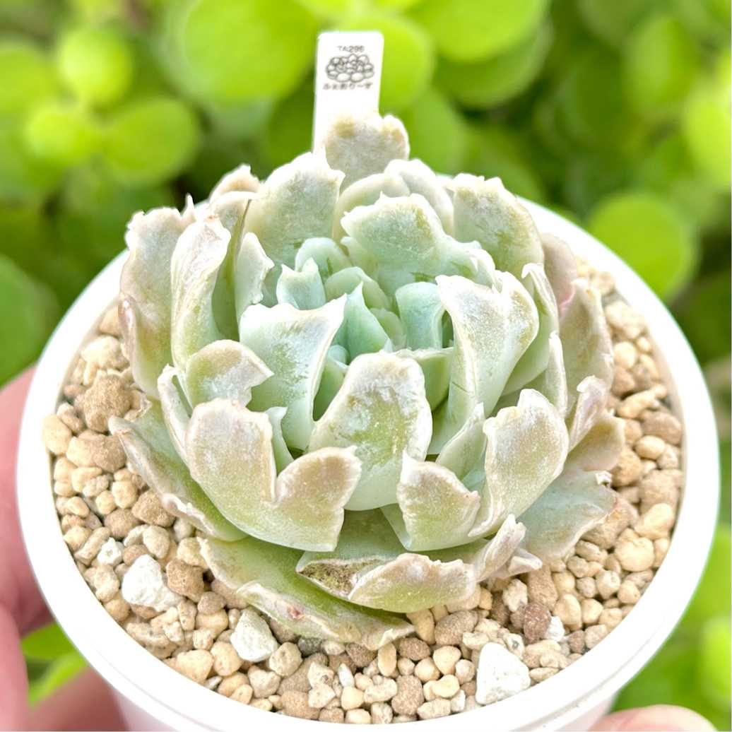 【エケベリア組 ㊗️新入生】 ●ホワイトロータス(白蓮) 6cm鉢 『エアーマジックのカンテとラウイのハイブリッドのホワイトロータス。 こちらはホワイトロータスの名だが顔違いで交配式も不明。』