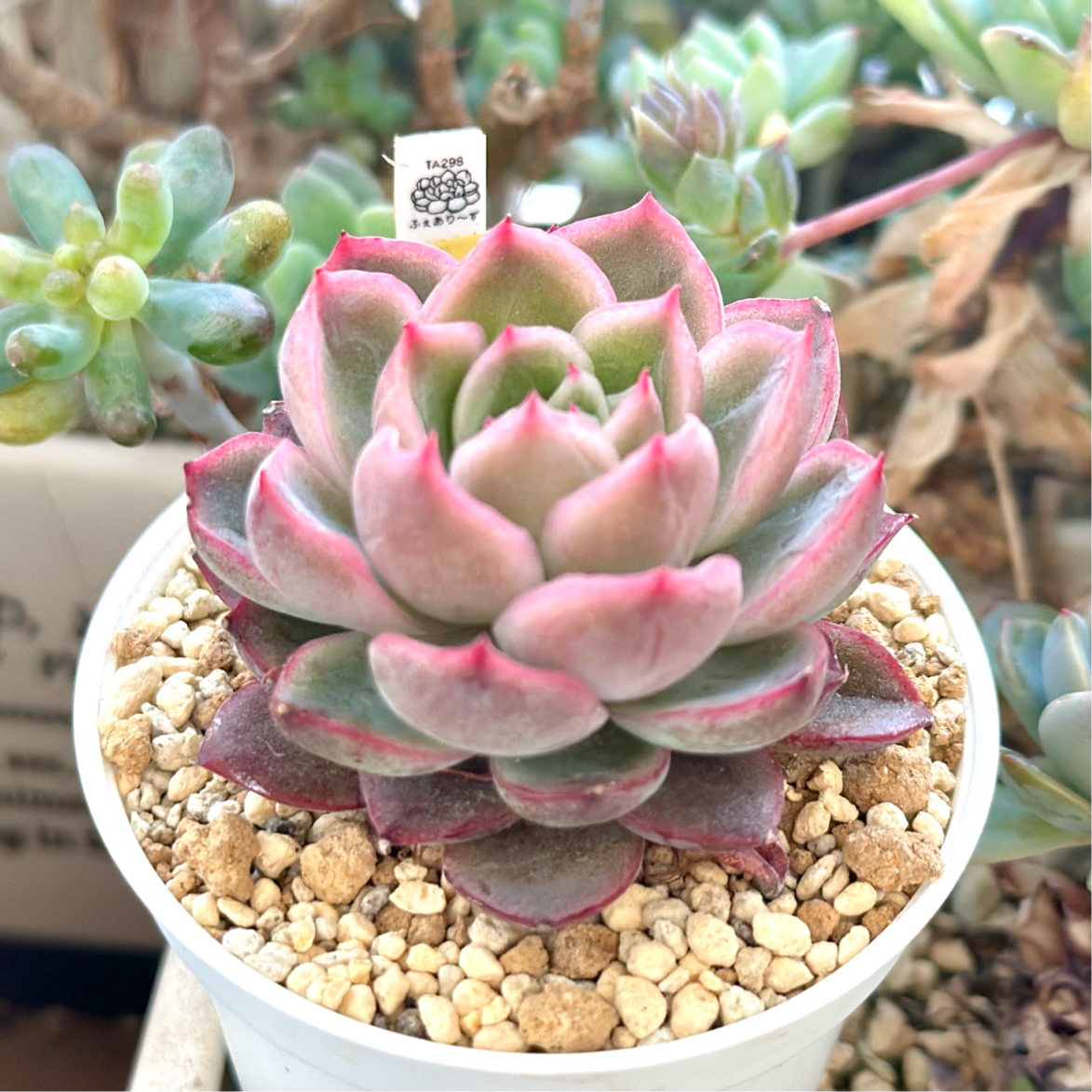 【エケベリア組 ㊗️新入生】 コントレイル苗●落桜(らくおう) 6cm鉢 『韓国苗。 ラズベリーアイスに似た個体もあるが、顔違いか別品種かは不明。』