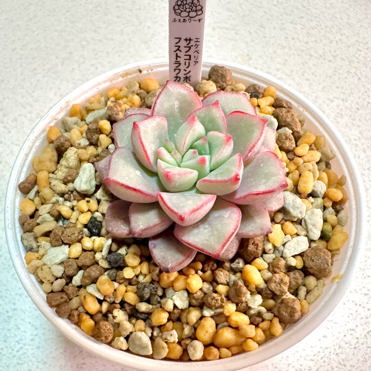 【エケベリア組 ㊗️新入生】 ●ベリームース 6cm鉢 『白いボディに赤が映えるジャム系の新品種。』