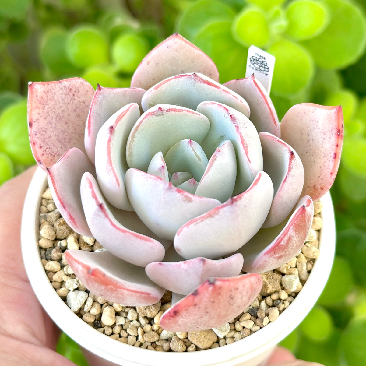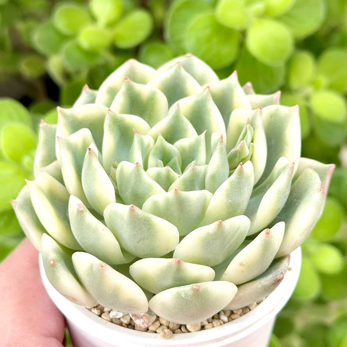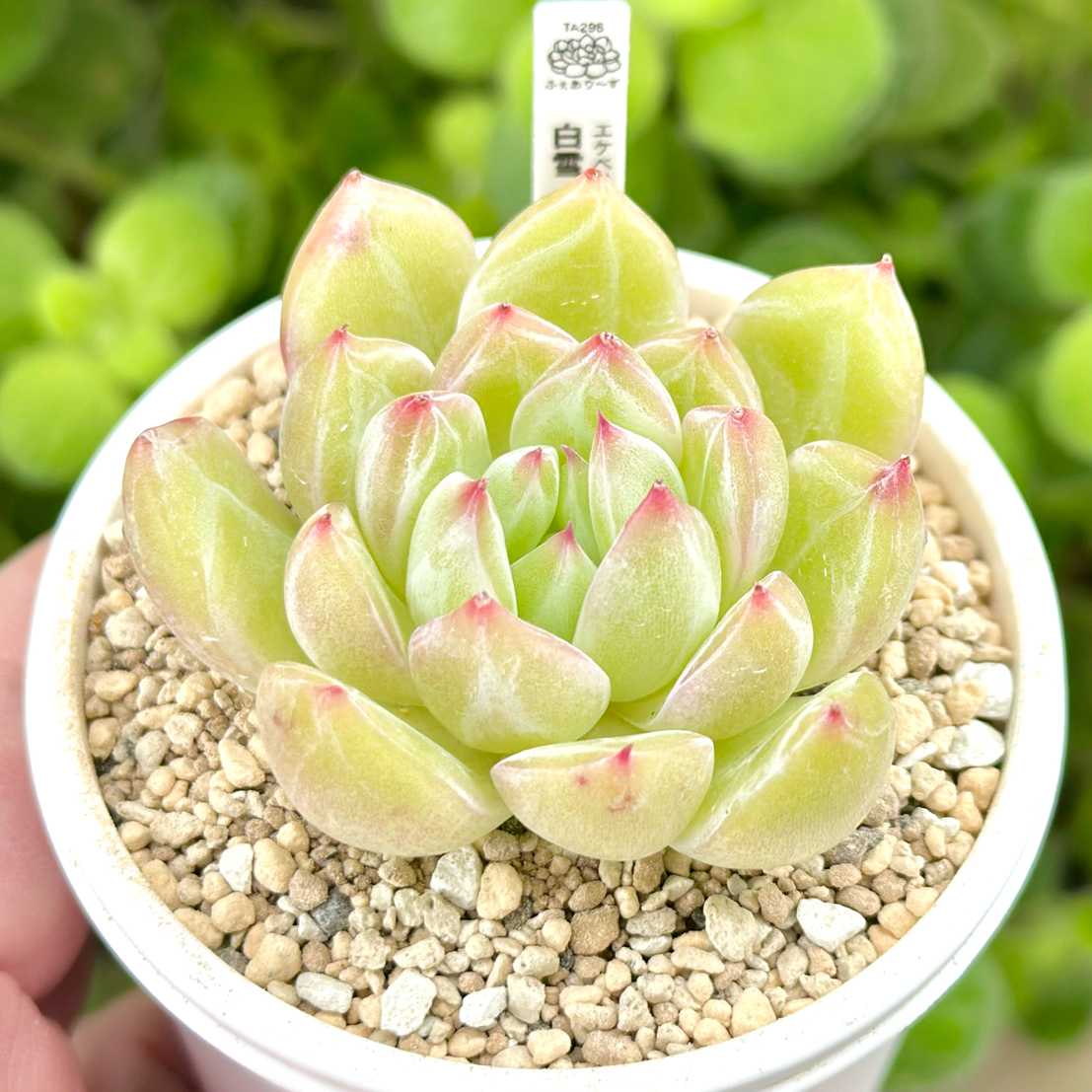 【エケベリア組 ㊗️新入生】 ●白雪 6cm鉢 『明るいグリーンにピンクの爪。 』
