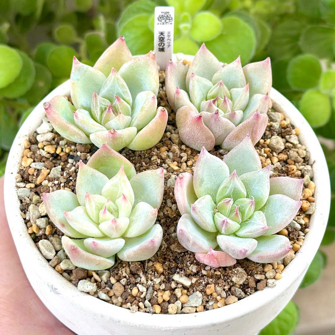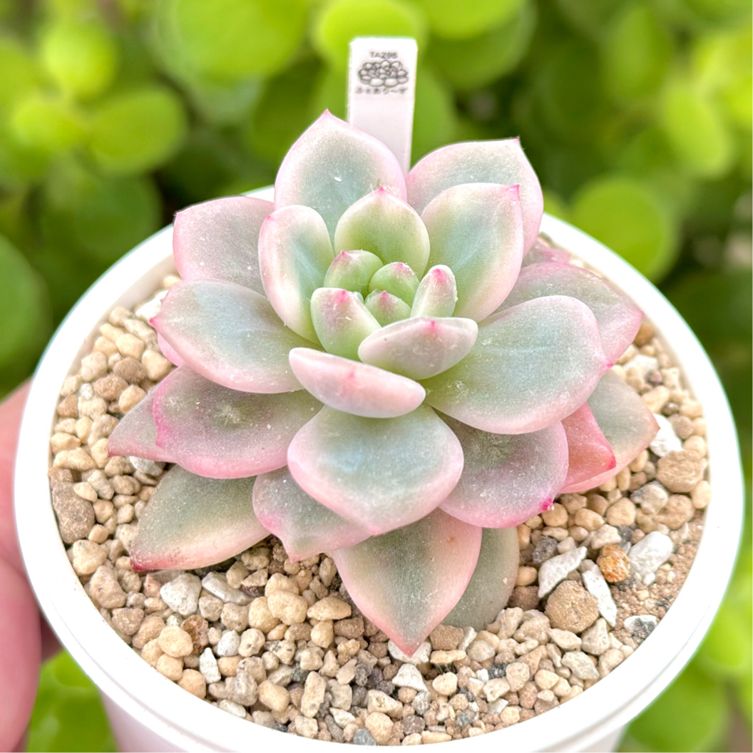 【エケベリア組】 おらいさん苗●ミックスベリア005 ストロベリーミルククラウン 6cm鉢 『淡い白肌とピンクに染まった爪をストロベリーミルク、均整のとれた草姿をミルククラウンに見立てて「ストロベリーミルククラウン」と名付けられたミックスベリアの中でも、秀逸な物のひとつ。』