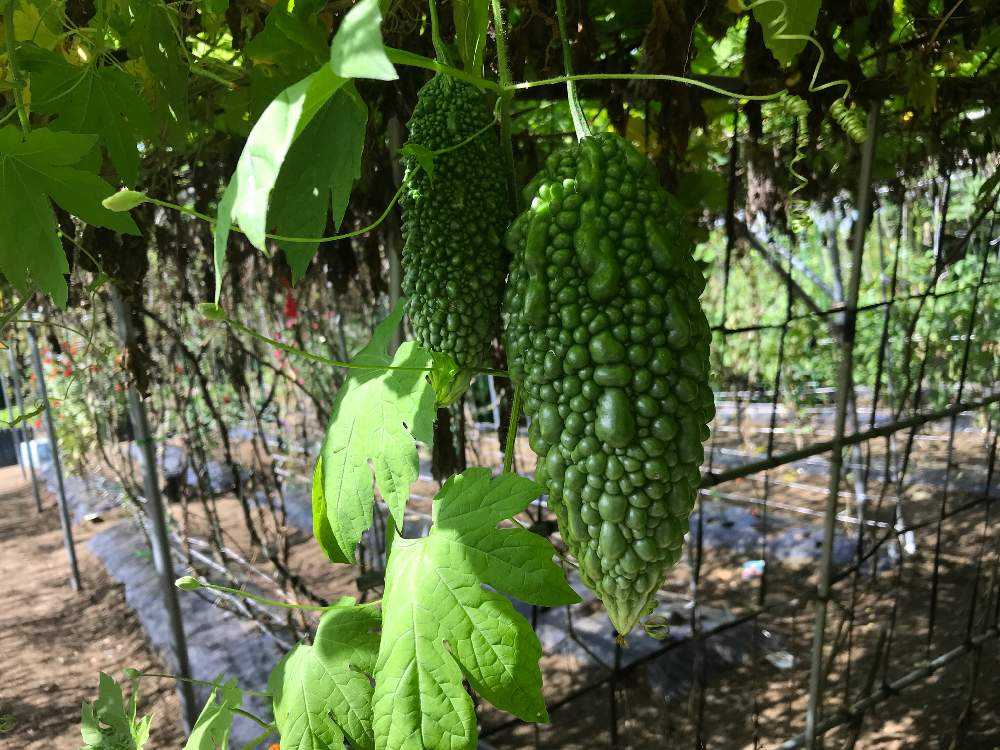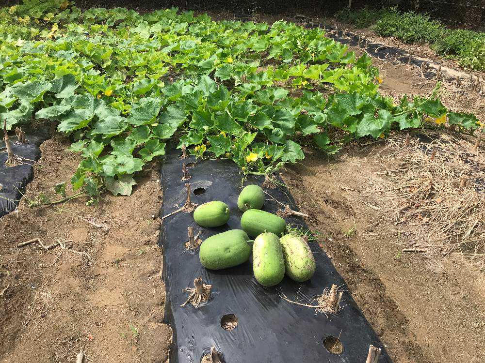 カボチャやトウモロコシの収穫の終わった後のスペースにのびのびと蔓を伸ばして、我が世の秋?を謳歌しています。