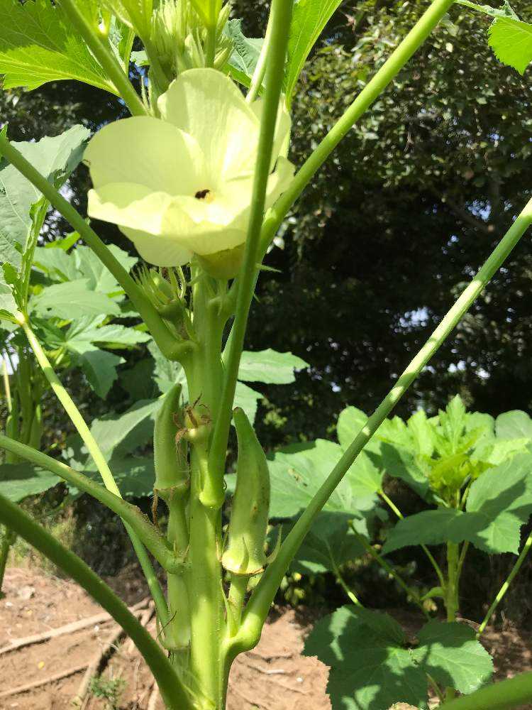 硬くなりにくいとても美味しいオクラです。もう、高さは2mぐらいあります。