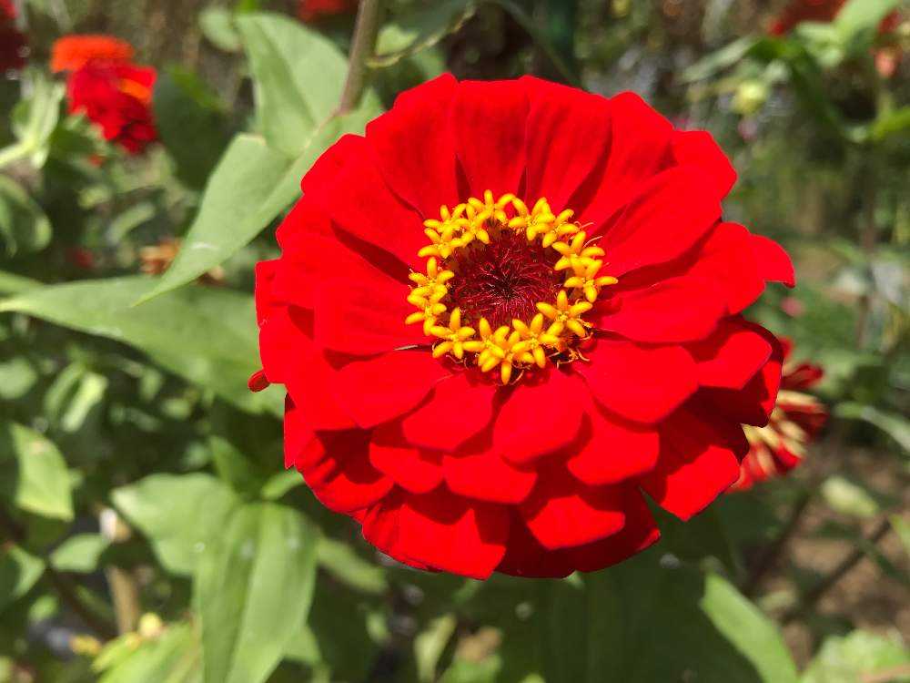余程、肥料が効いているのか、百日草が大株になって咲いています。