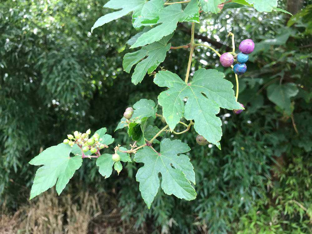 これはうちの畑ではありませんが、畑の入口の前で見つけたノブドウです。