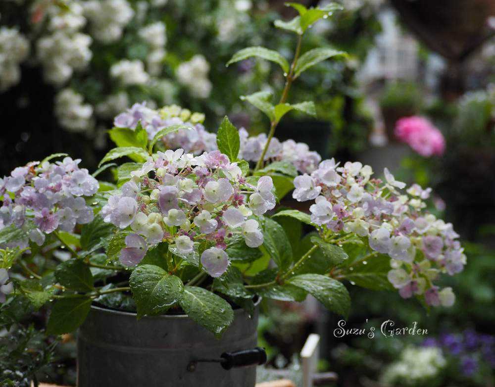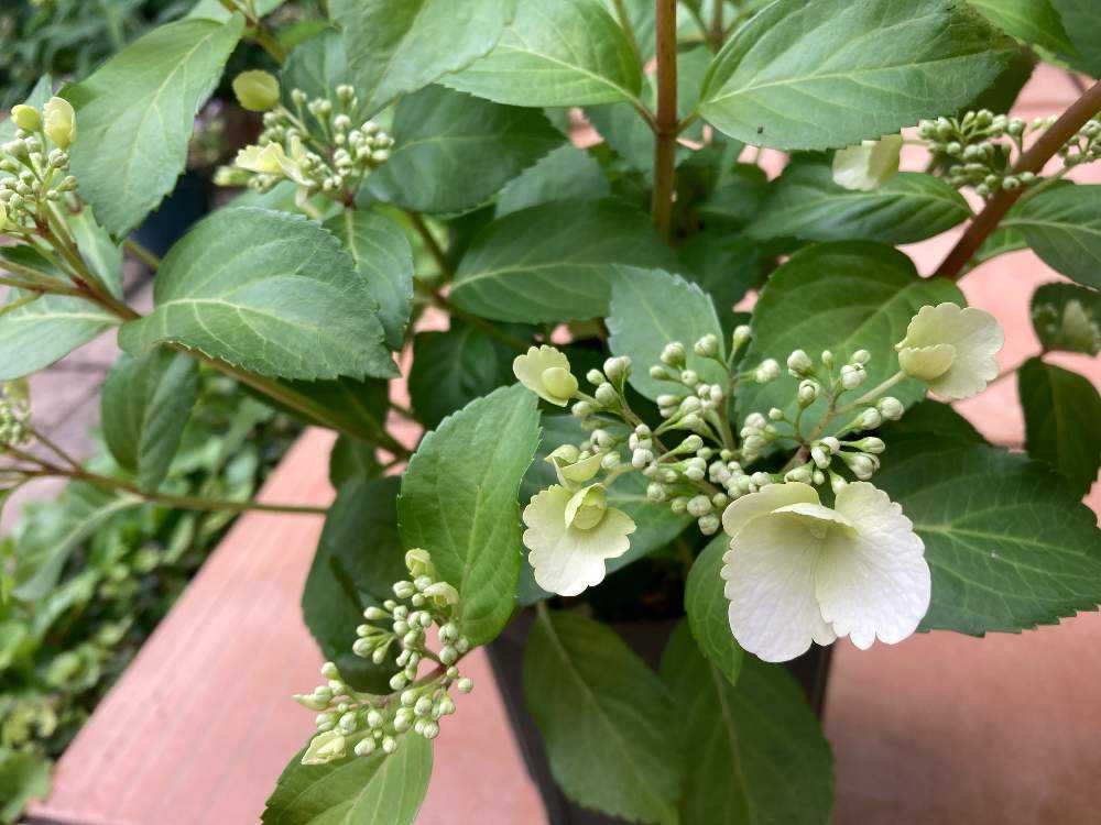 咲き進むにつれてライムグリーンからホワイト、淡いピンクへと花色が変化します。土壌のpHによっては花色がソフトブルーになる場合もあります。