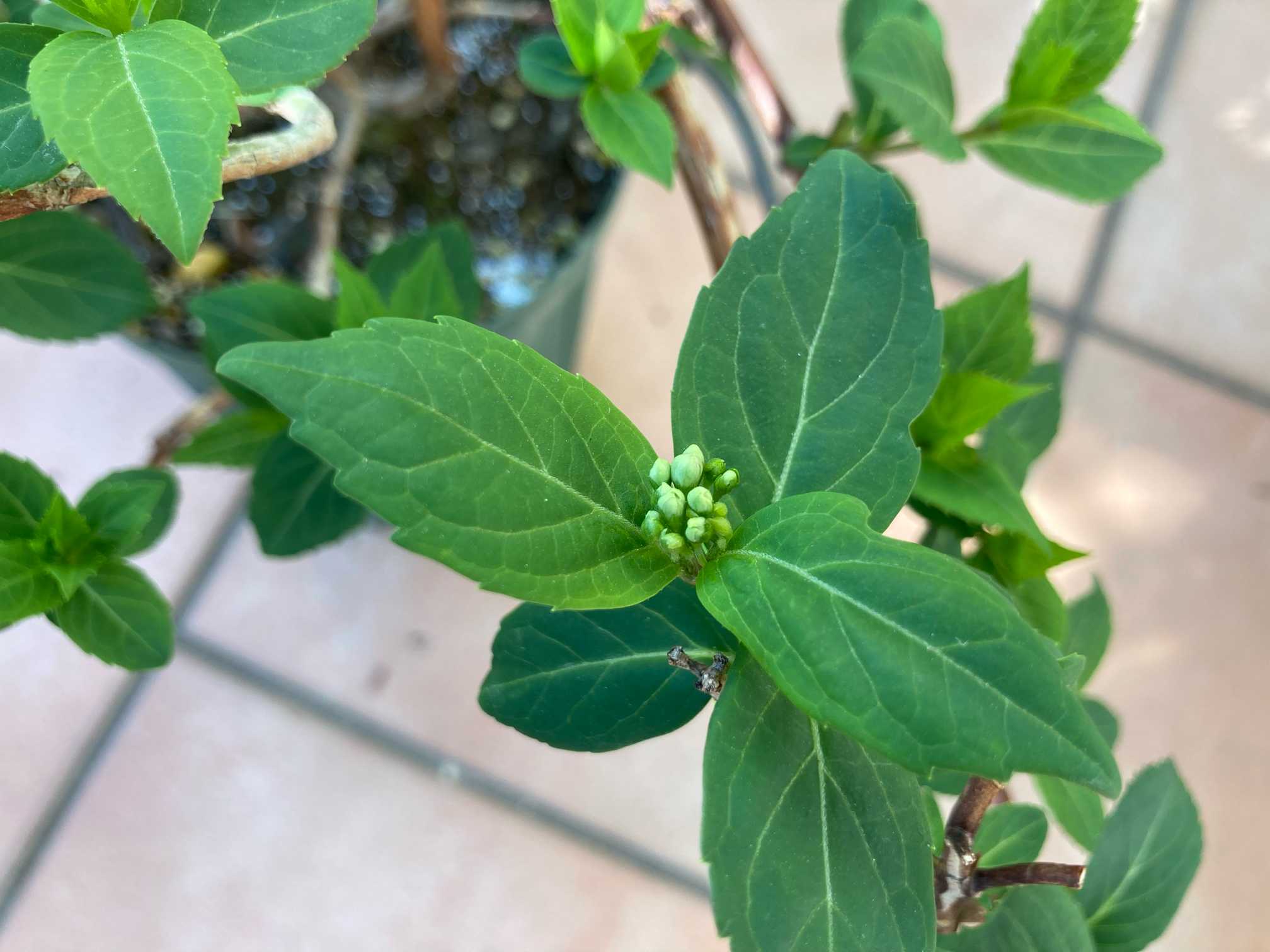 側芽(枝につく芽)に花がつくラグランジアは、剪定位置を細かく気にしなくても、次の年にはたくさんの花芽をつけ、株いっぱいの花を楽しむことができる新ジャンルのアジサイです。