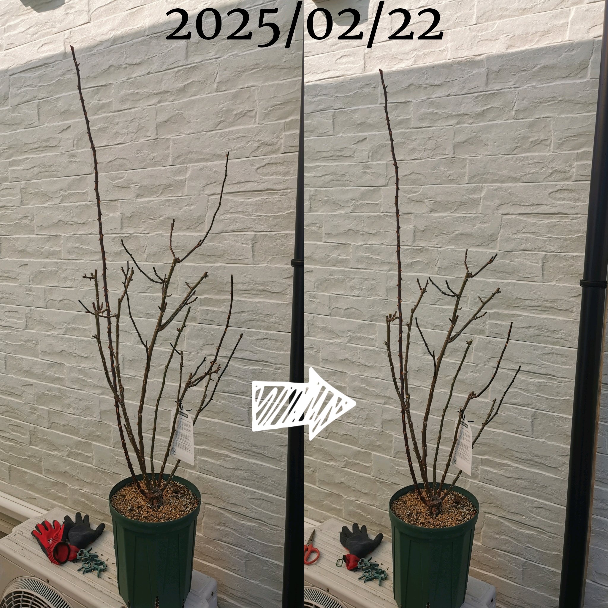 冬の剪定ですが、地植えして大きくする予定なのでそんなに切らずに細枝と先端だけ切りました。