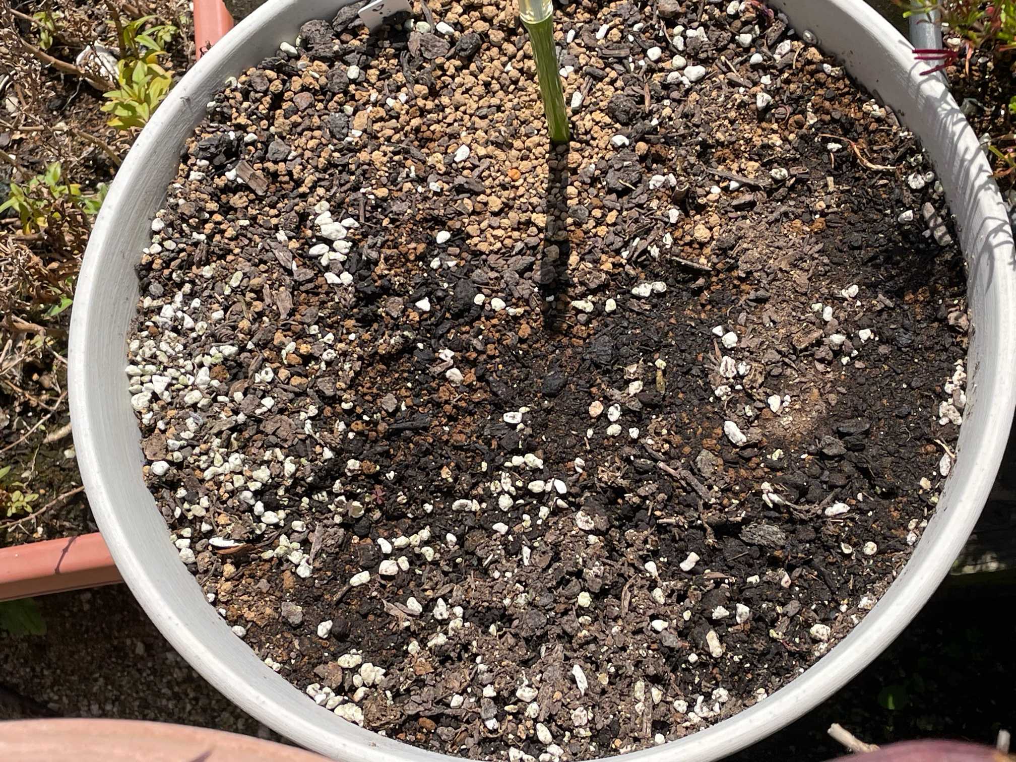 ま、「茎が伸びてきたら増土をする」と書いてあるので いっか。