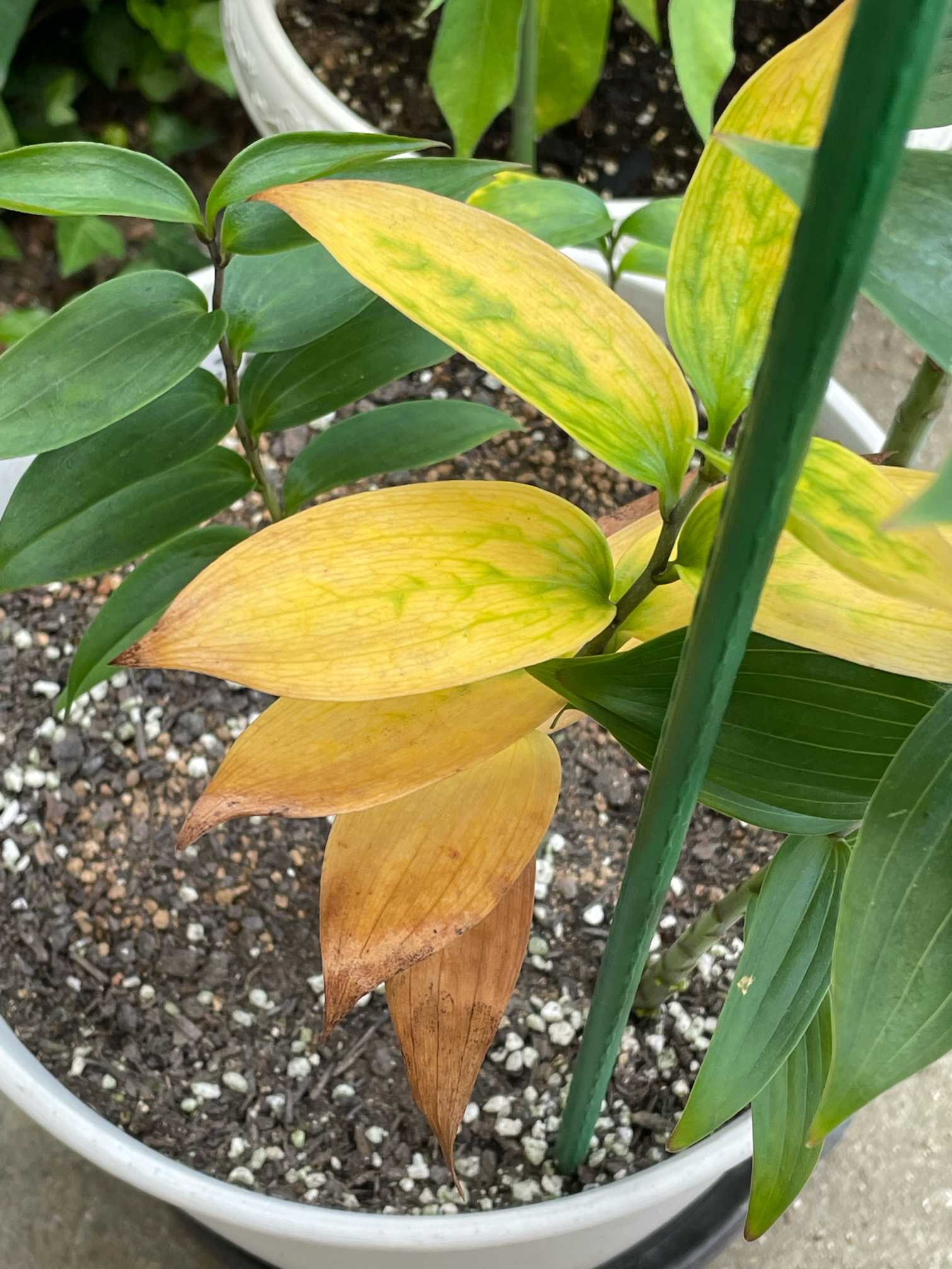 自分の虎の巻📖見たら、葉っぱが黄色くなるのは水のあげすぎと書いてる。