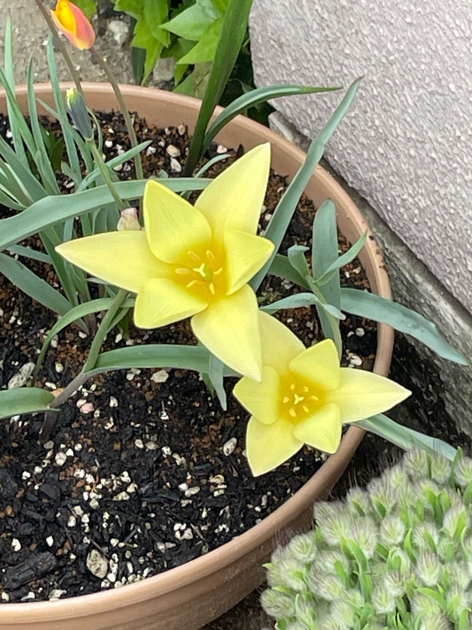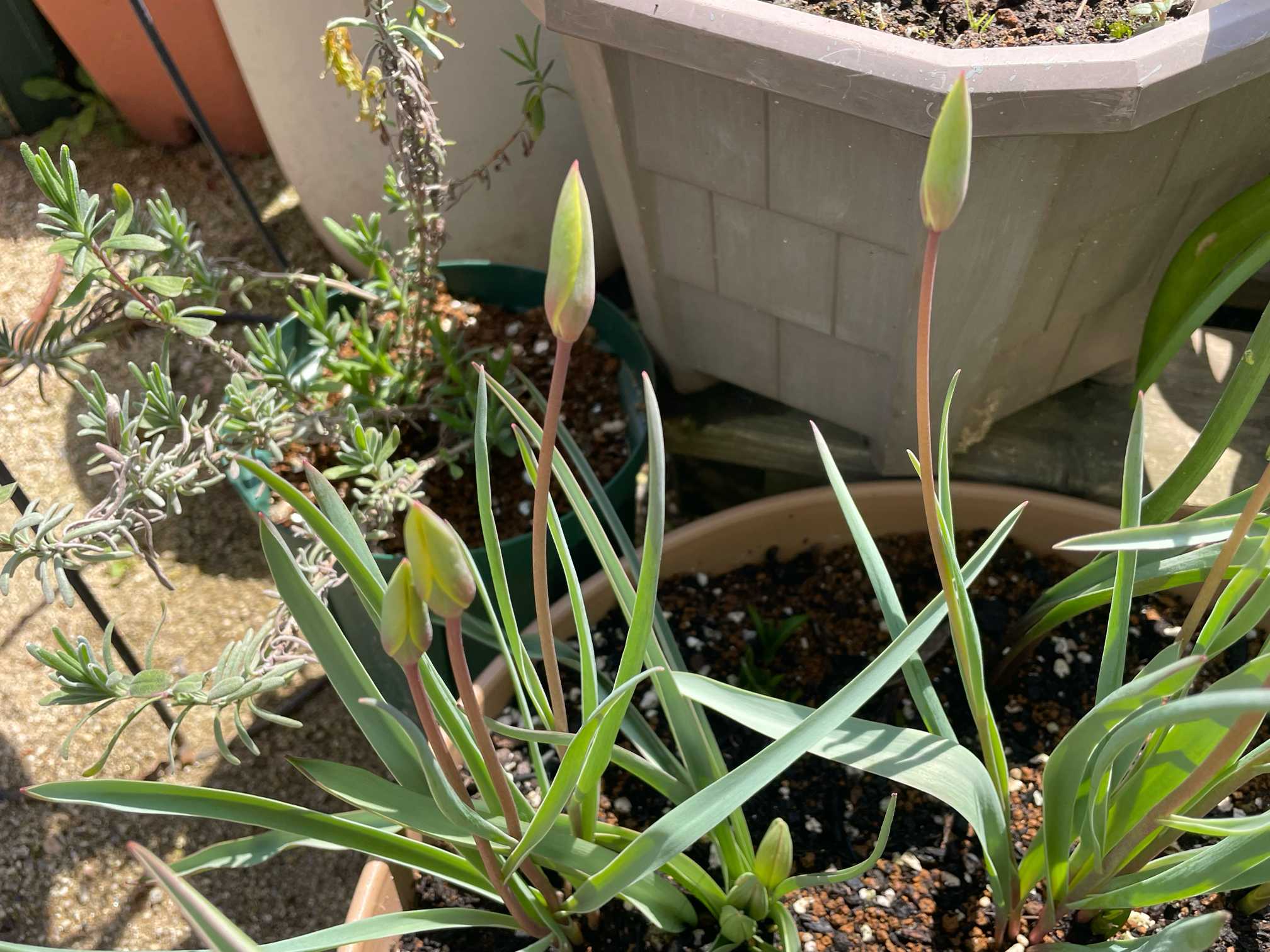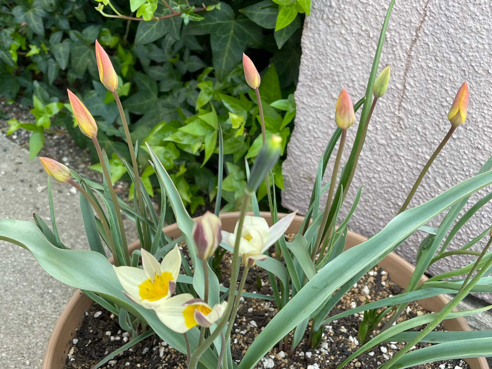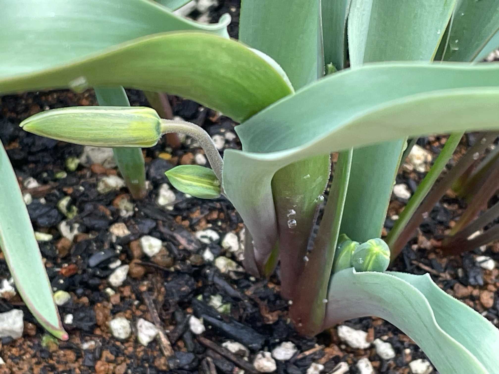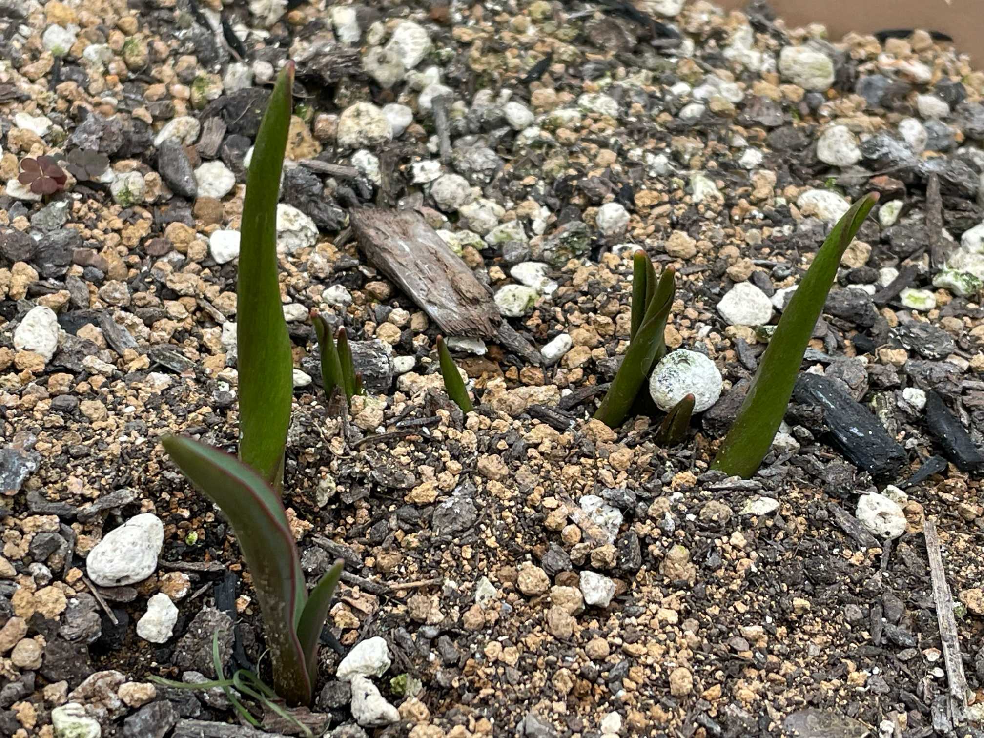 ミニチューリップちゃん🌷は、全部で7コほど芽が出てます🌱✨