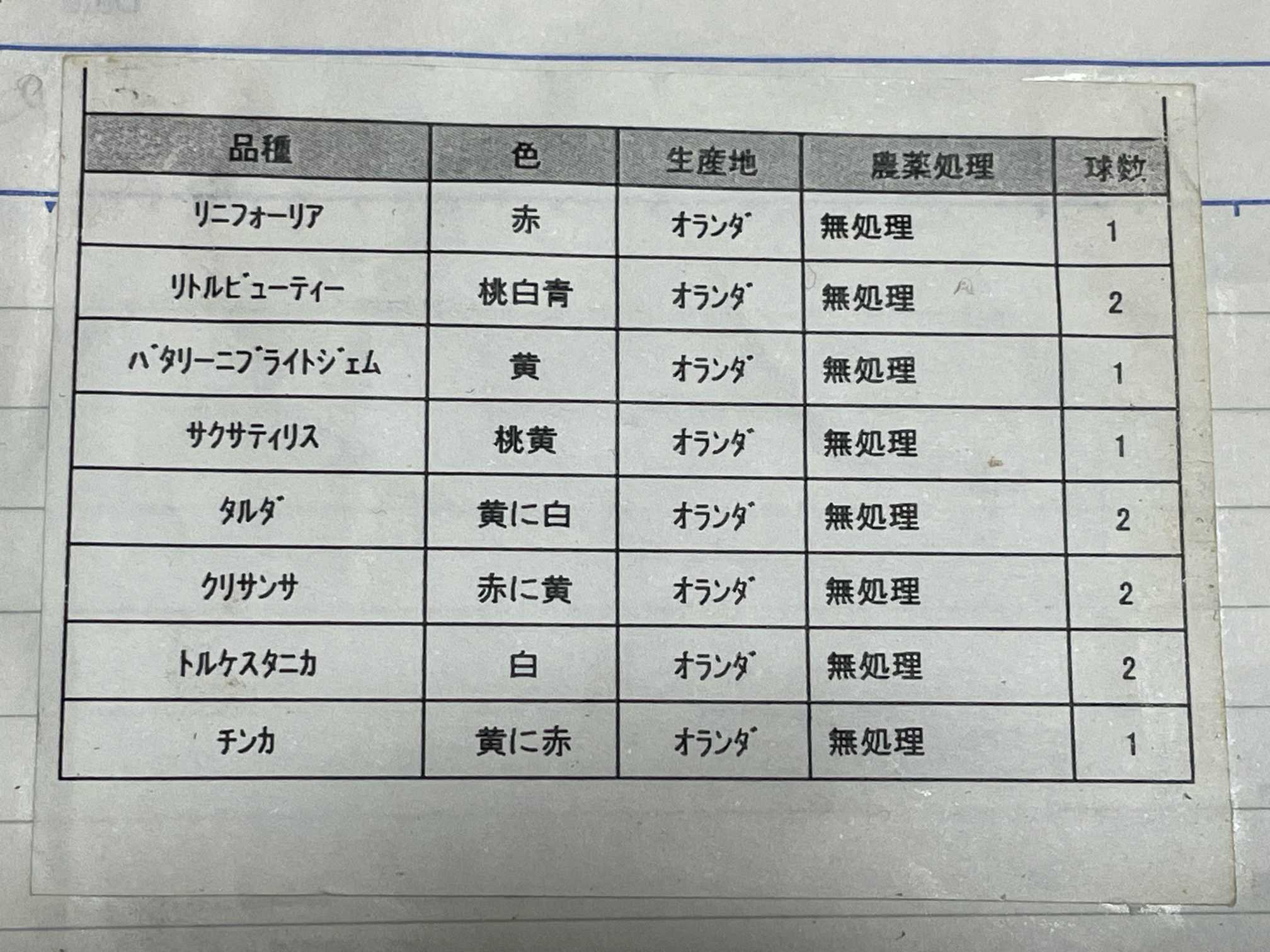 前にこの球根買った時についてた名前一覧 見つけたんだよね😅