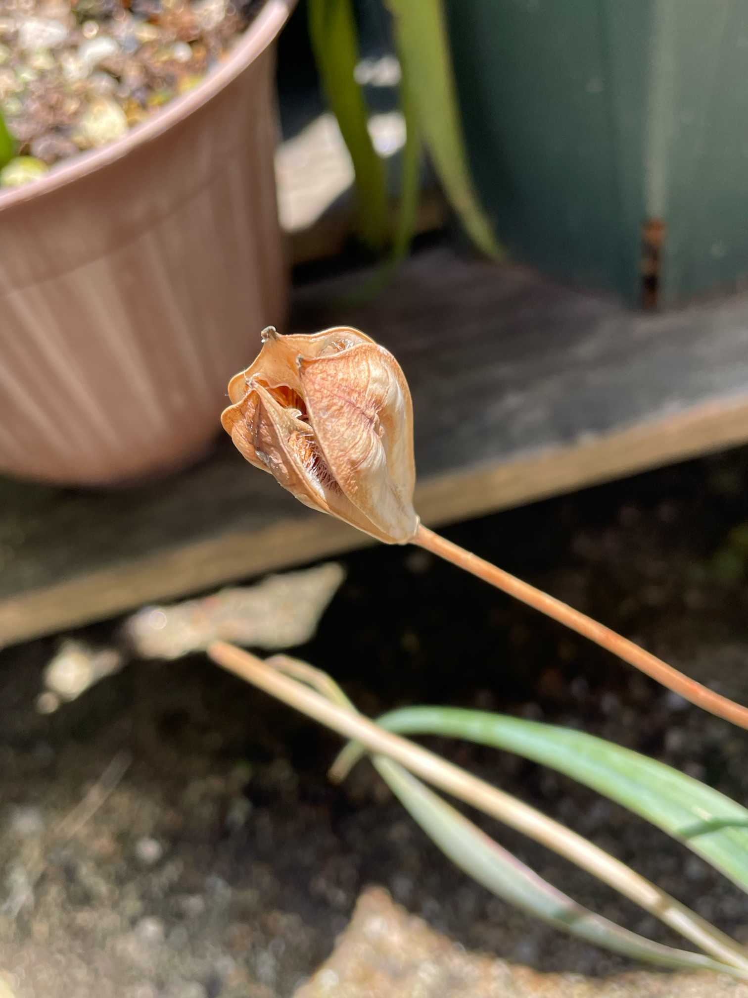 秋に1回 球根掘り起こして、土替えて、この種も蒔いてみようか。ダメっぽいけど。