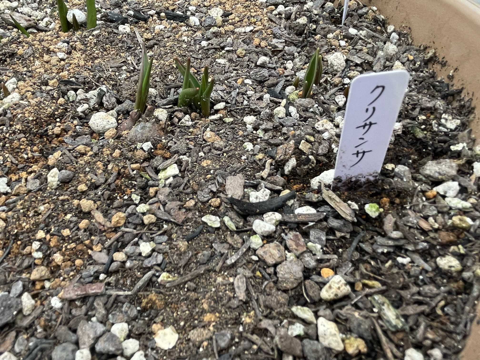 こちらは、球根の裏書によると、1センチぐらい土をかぶせればいいとのこと。