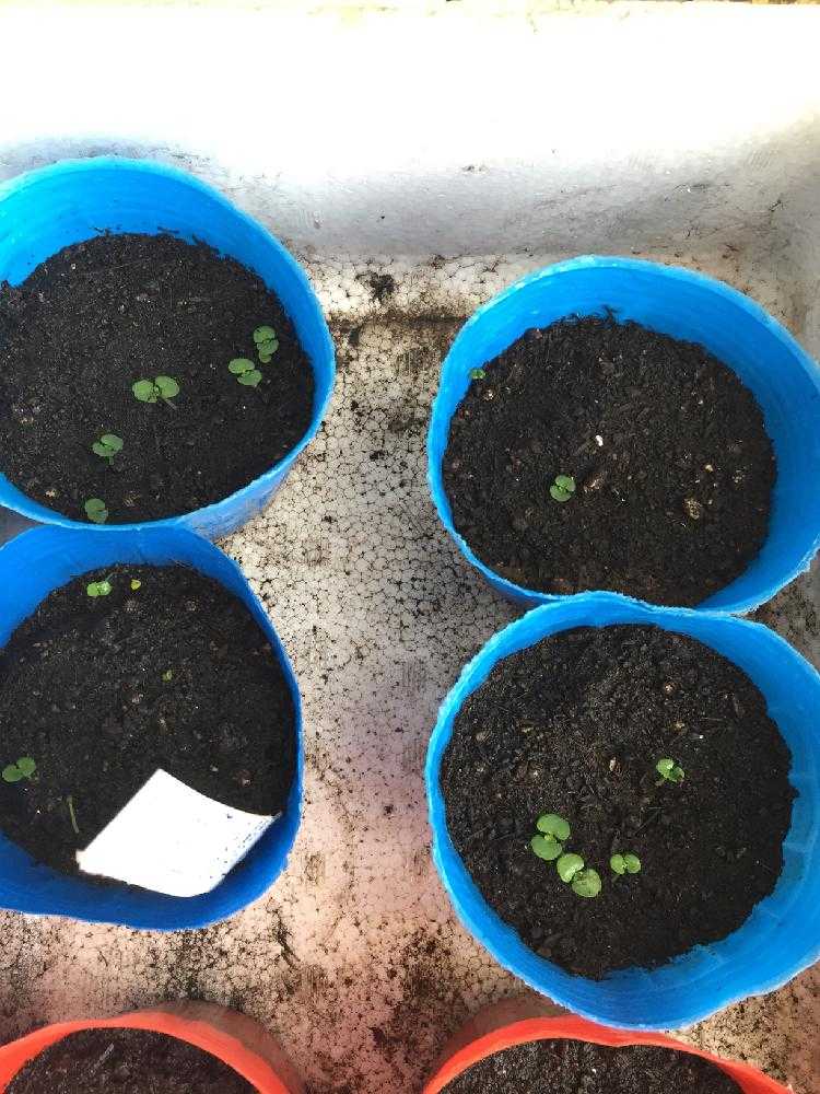 袋の裏面の情報によると、ポットに薄く土をかぶせ新聞紙で覆っておく。芽が出始めたら新聞紙をとり、日光に当てる。発芽は7〜10日後とのこと。