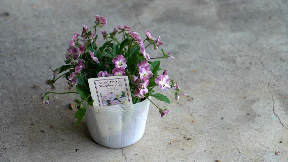 メインとして購入したブランド苗。ビオレッタ・ラズベリーアイスという小輪ビオラ。超多花性のピンクのお花です。流石にブランド苗だけあって個性的で花付きも凄いです♪