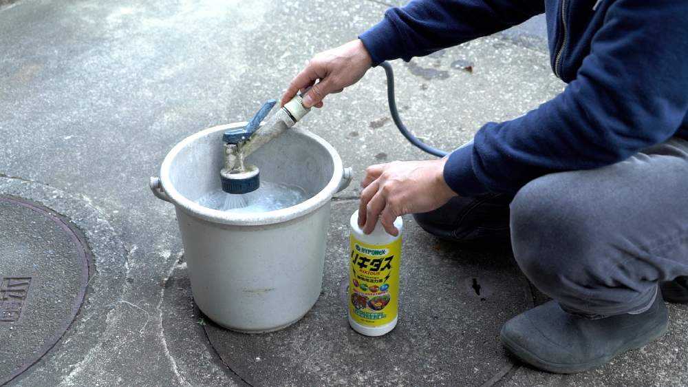 植え付け作業のルーティーンになっているリキダス1000倍溶液を用意します。もう手放せない程重宝しています。やっぱりこれを使うと植え付け、植え替えのダメージから回復するのが速いです。冬場は根が成長するのが遅いので、使うとより効果を実感します。