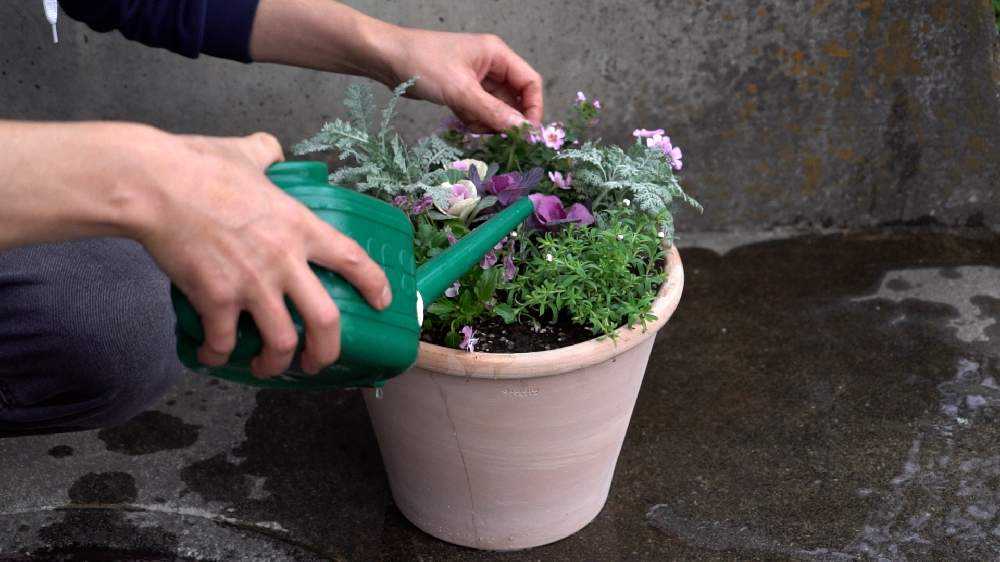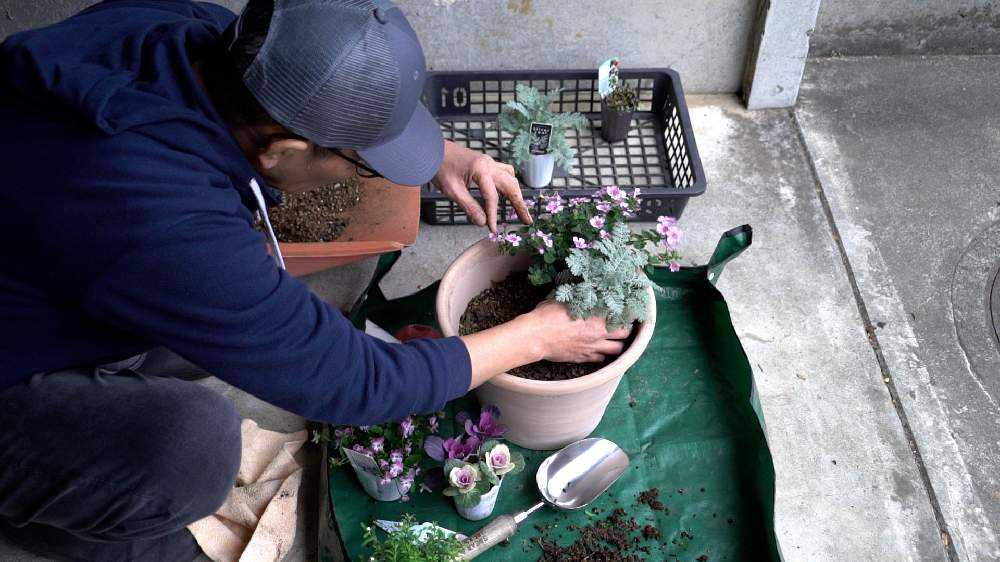 土を丁寧に入れます。苗の間もしっかりと入れて植え込み完成です♪