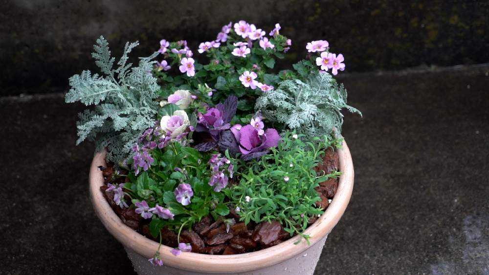 今回の寄せ植えの正面はビオレッタ・ラズベリーアイスと花かんざしを並べる形にしてみました。両方とも多花性品種なので、咲き上がって来るのが楽しみです♪また、球根達が芽を出してきたらどんな姿になるのか?ま楽しみです。春が待ち遠しいですね♪