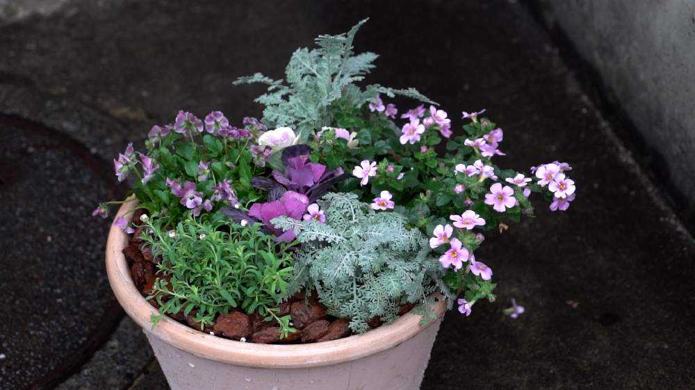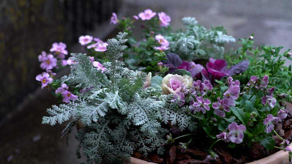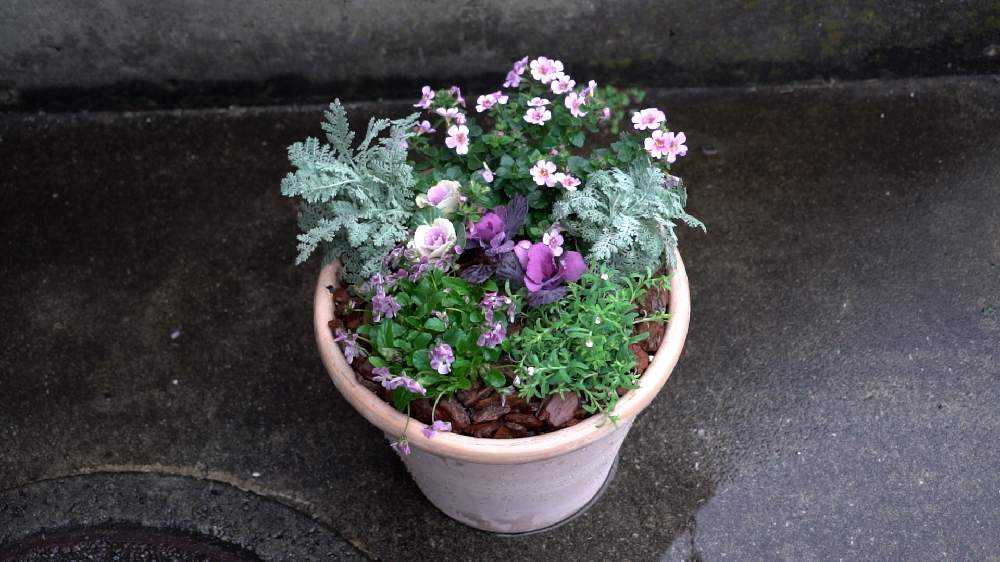 ミニ葉ボタンとシルバーレース 修景にバコパ