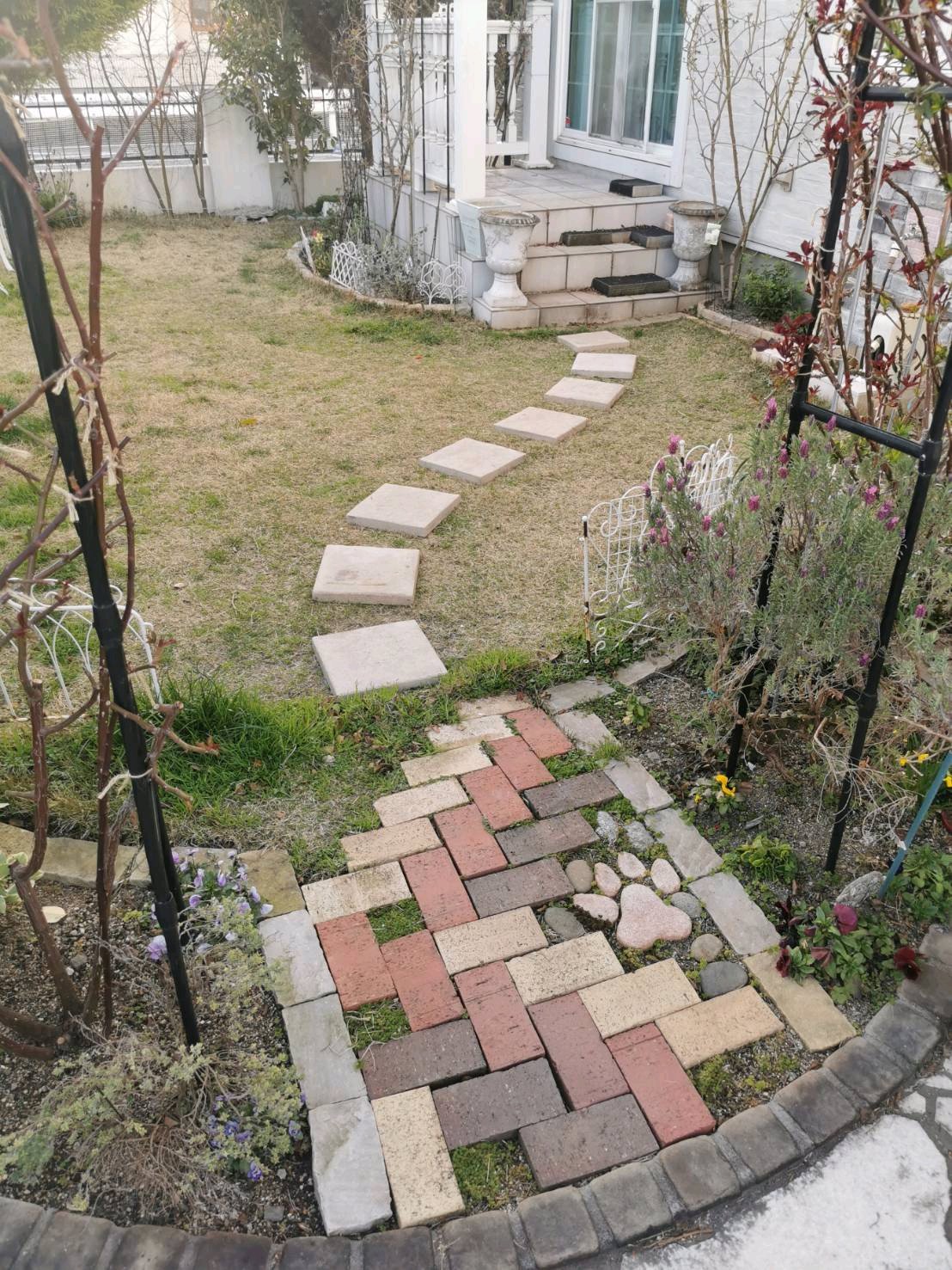 小道のところにはワンコの敷石をとりあえず仮置してます🐾