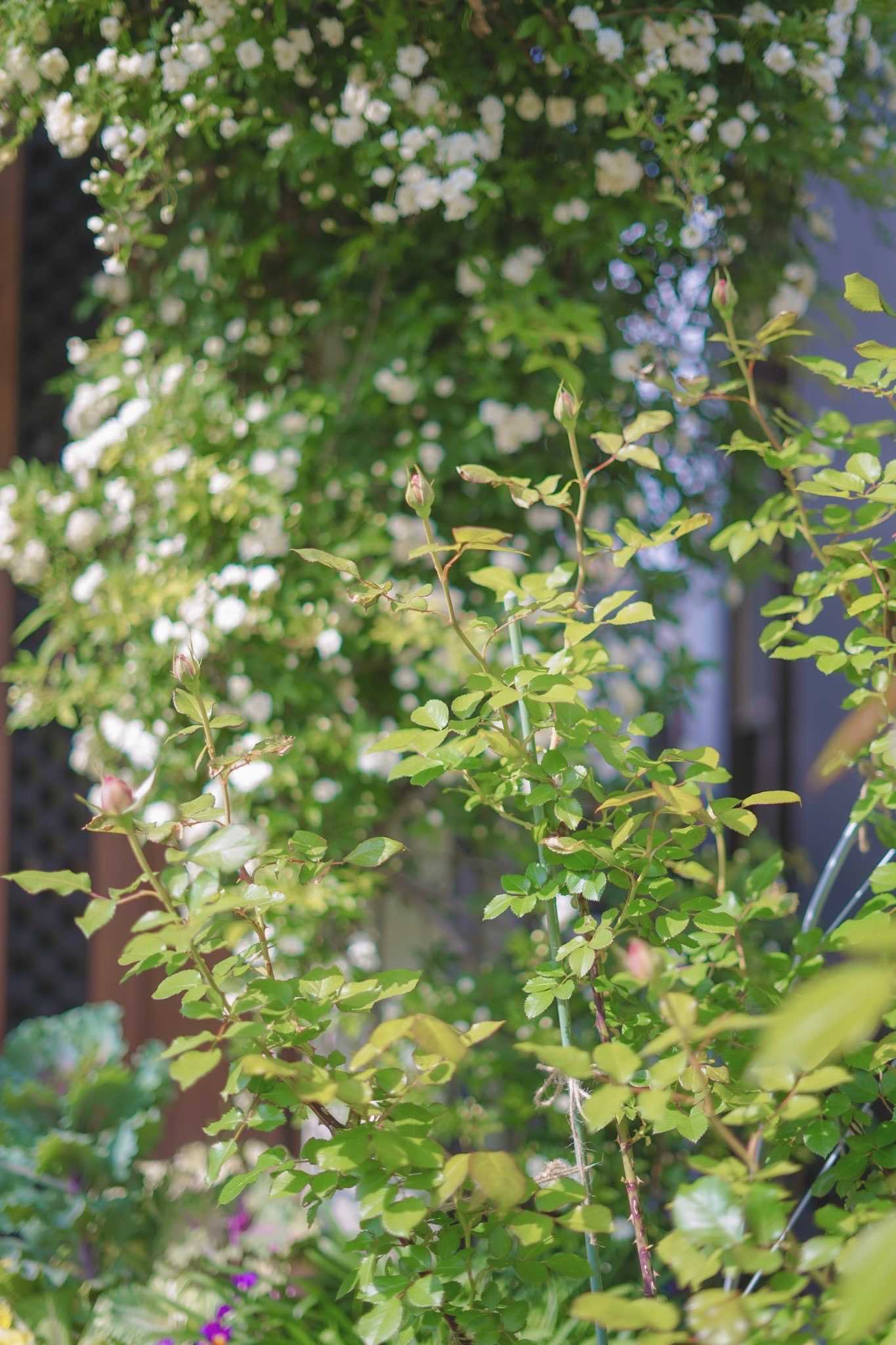 オベリスク仕立てにしょうかと思って枝を伸ばしていたのですが、作業間に合いませんでした。