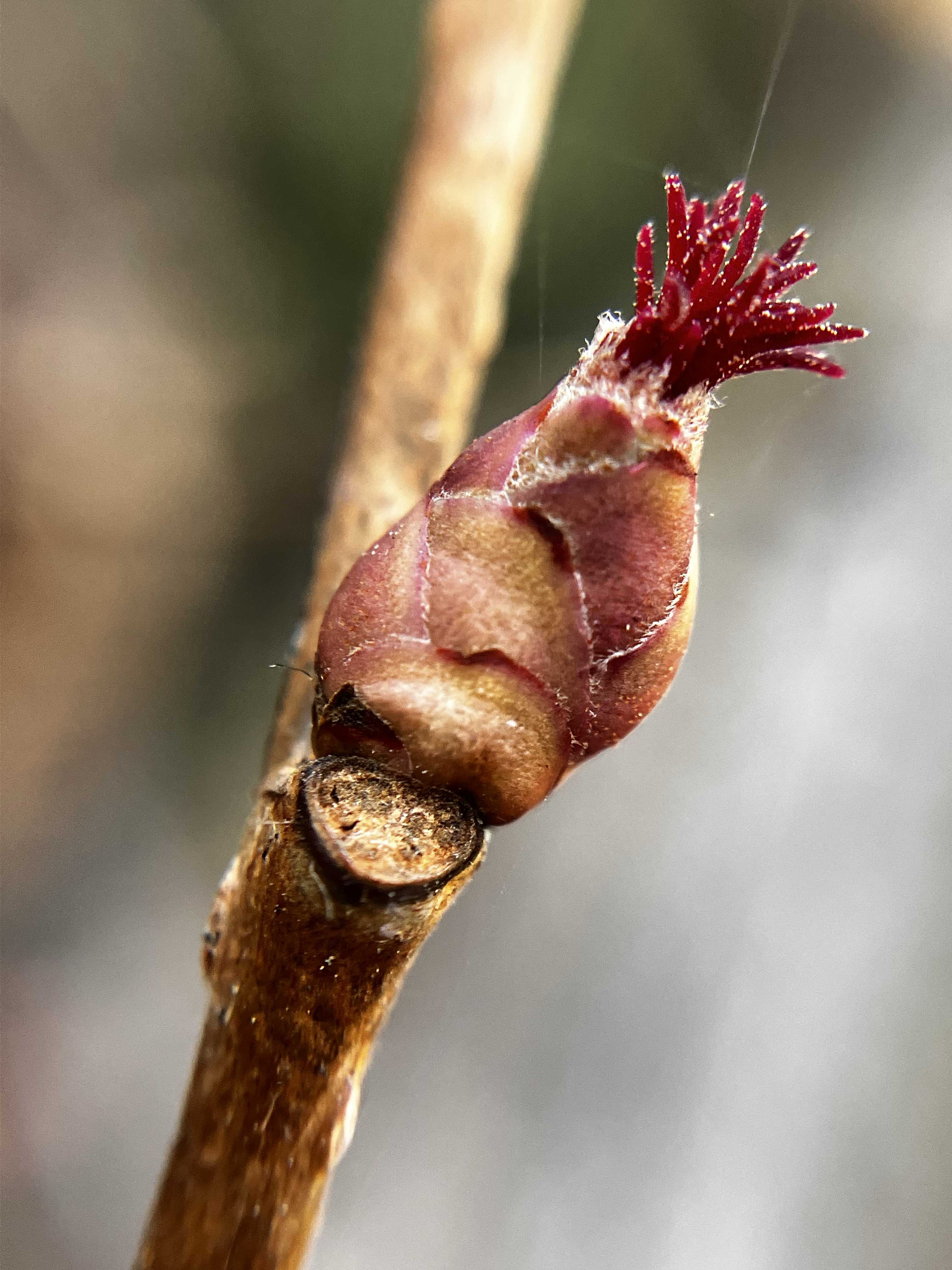 冬芽は水滴〜円錐形で赤くツヤがある!