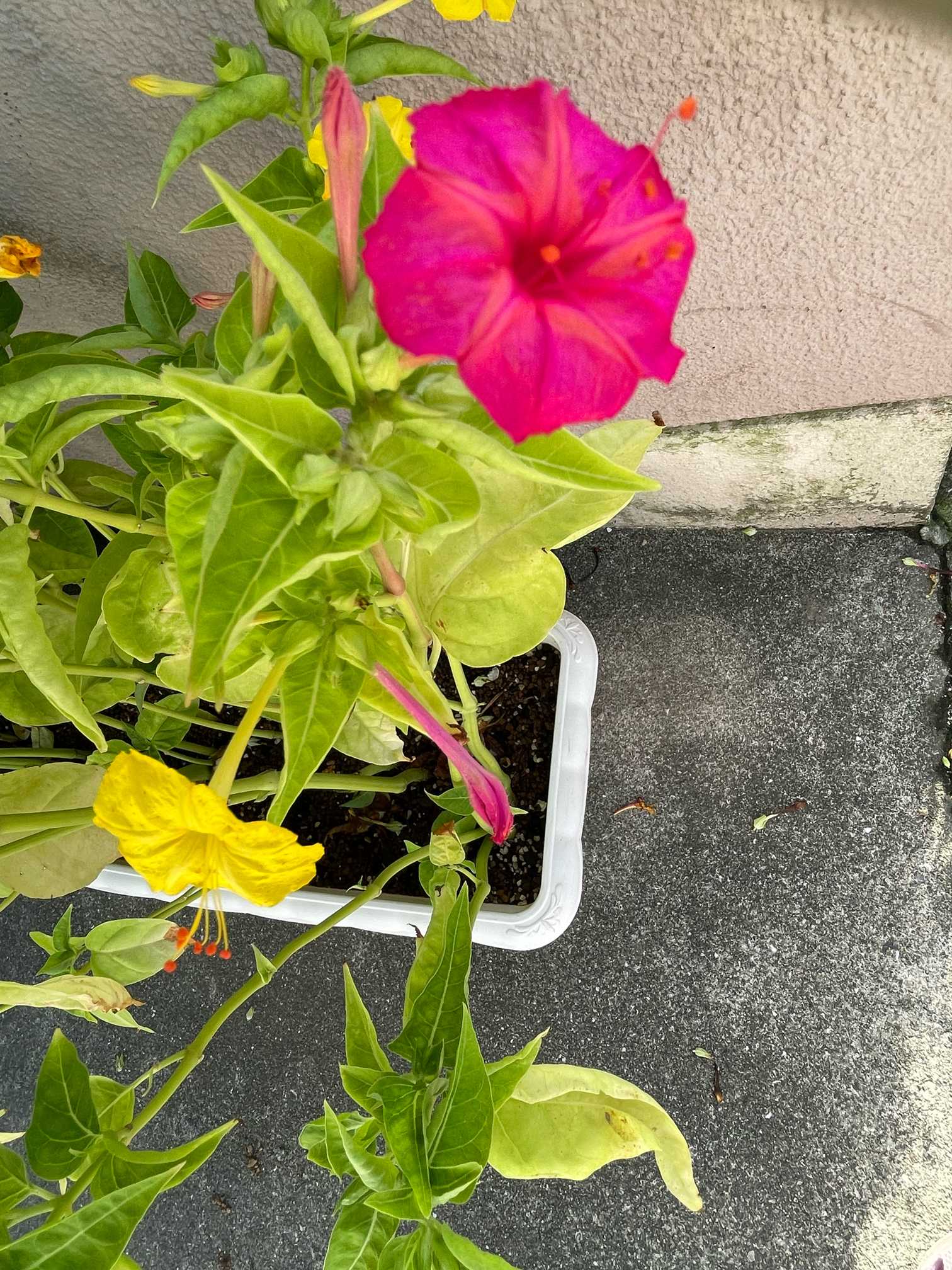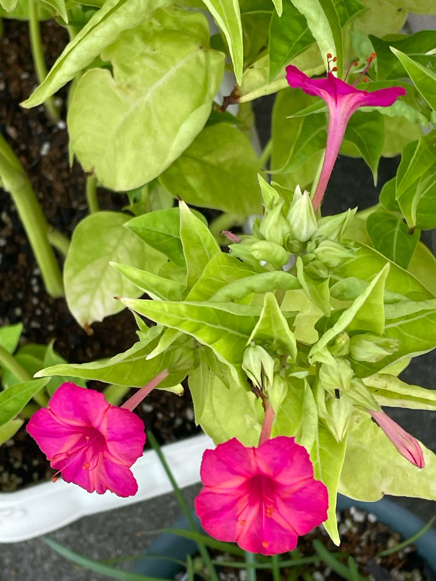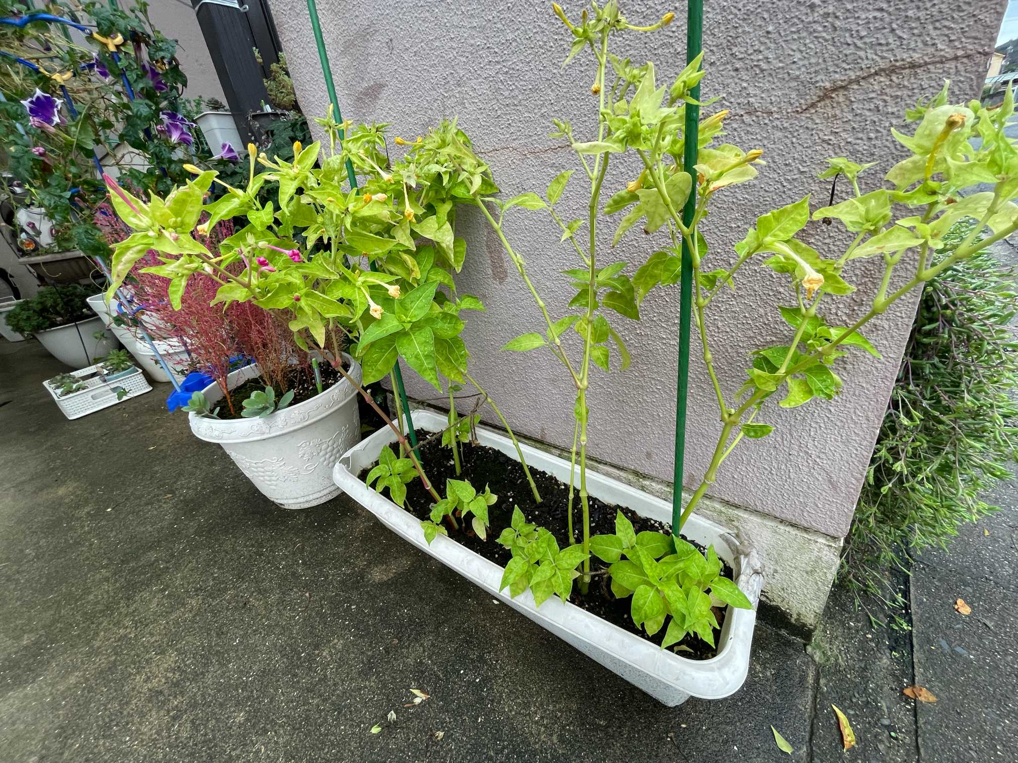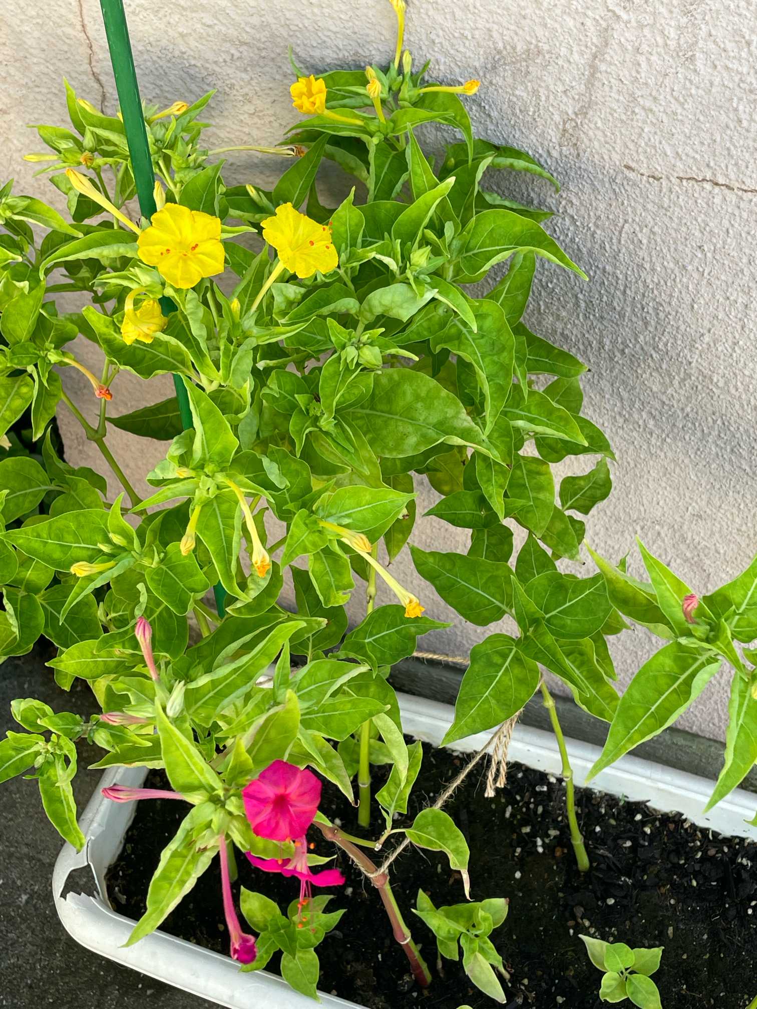 見慣れた感じのピンク(オシロイバナちゃんといえば ピンクの印象)も、このプランターでは珍しいからね。